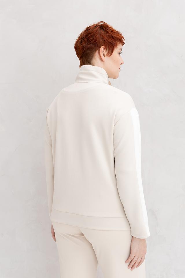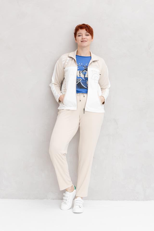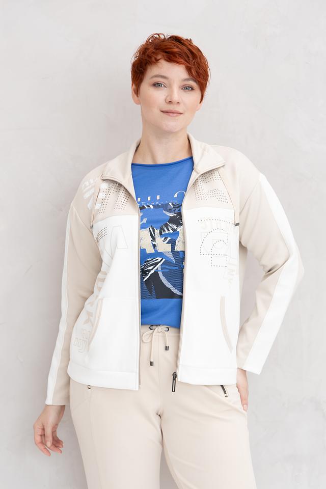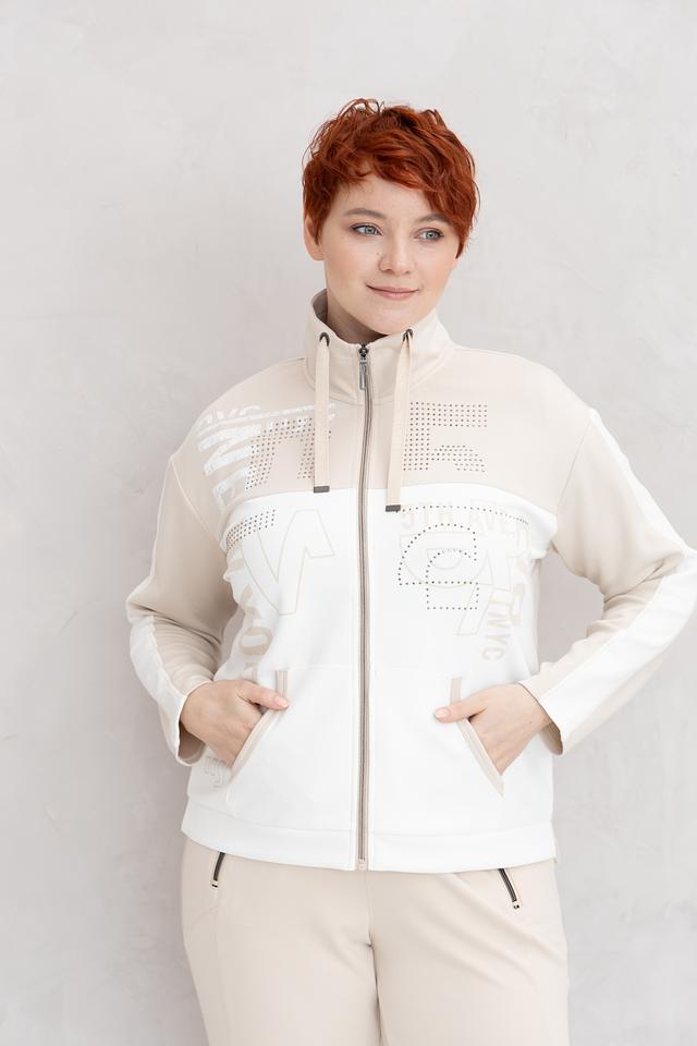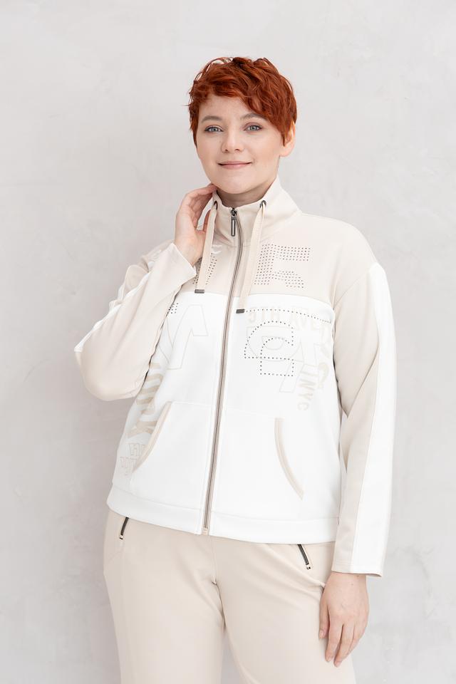 Состав ткани включает 50% полиэстер, 45% вискозу и 5% эластан, благодаря чему жакет хорошо держит форму, приятен к телу и обеспечивает свободу движений. Эта модель идеально подойдет для создания повседневных и спортивных образов.