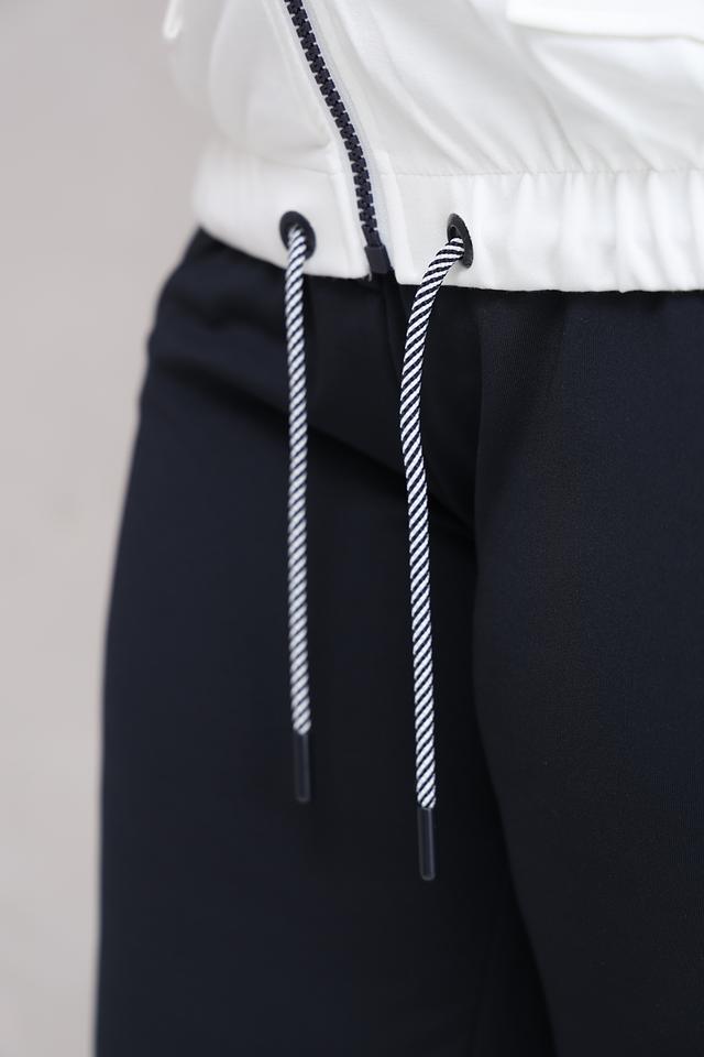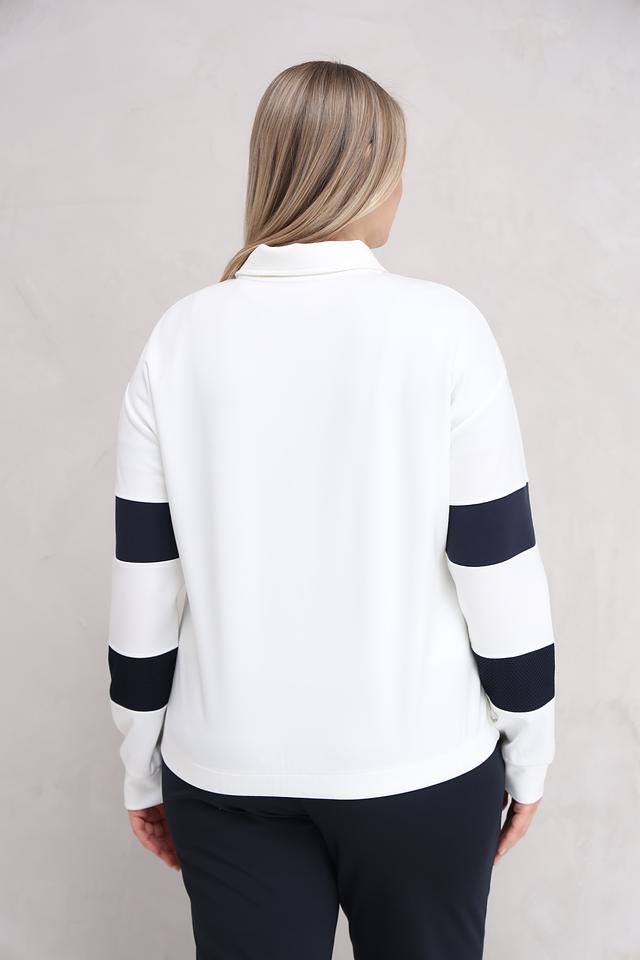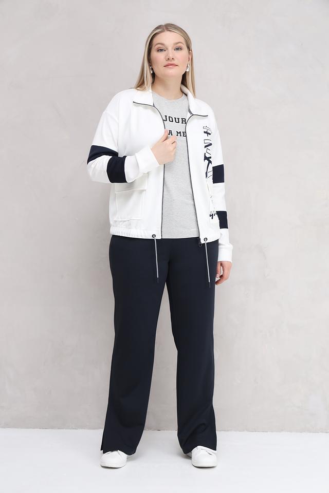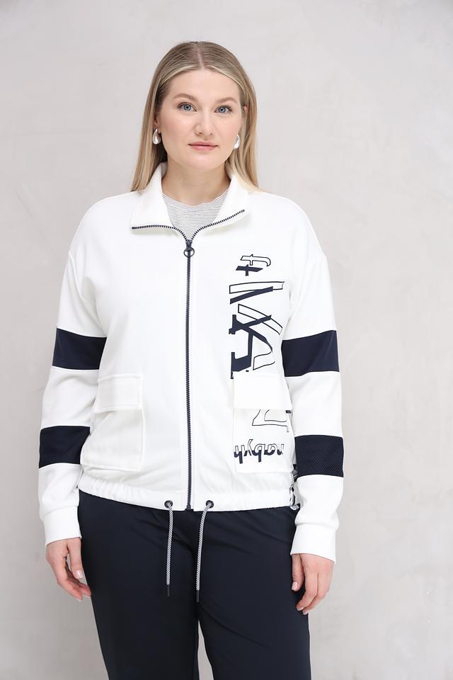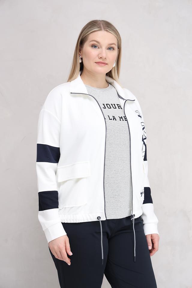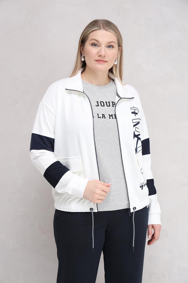 Белый жакет от Lebek с контрастными темно-синими рукавами и принтом на спинке. Модель на молнии с удобными карманами и стильным дизайном станет отличным дополнением к вашему гардеробу. Состав: полиэстер 50%, вискоза 45%, эластан 5%