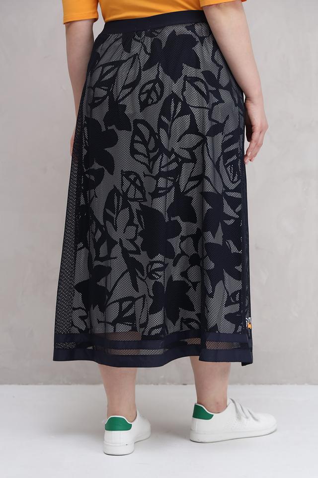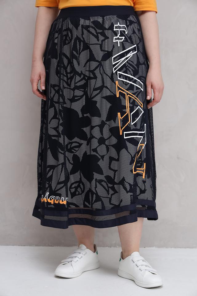 Юбка Barbara Lebek темно-синего цвета с оригинальным цветочным принтом и надписью. Модель выполнена из полиэстера и имеет длину миди, что делает ее универсальным элементом гардероба. Состав: полиэстер 100%