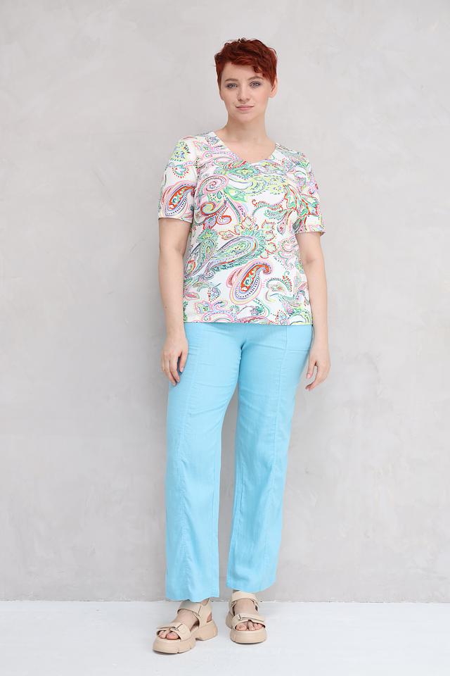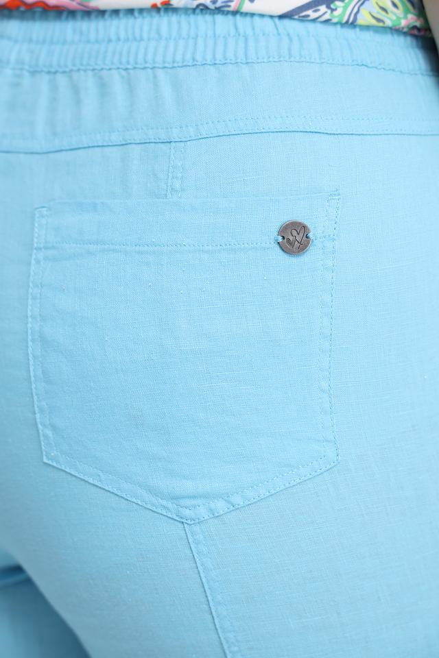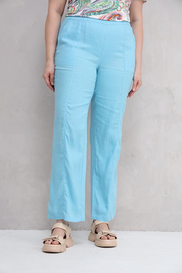 Ткань из 100% льна обладает отличной воздухопроницаемостью и приятна на ощупь. Голубой цвет брюк освежает образ и легко сочетается с различными элементами гардероба. Эти брюки станут незаменимой вещью в вашем летнем гардеробе, позволяя создавать стильные и комфортные образы.