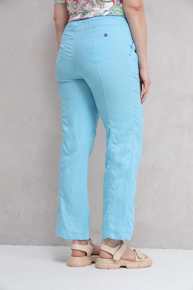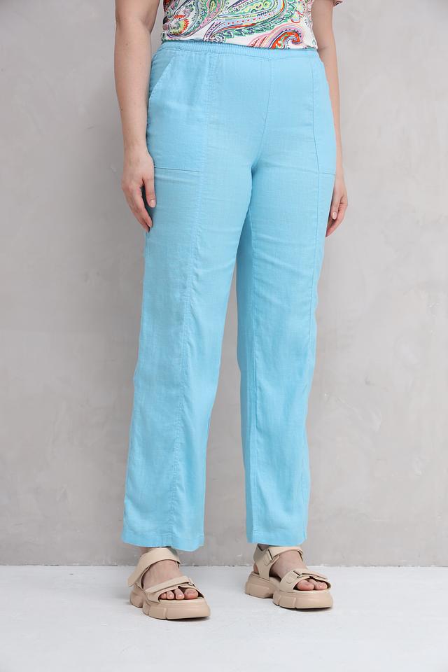 Женские брюки Lebek голубого цвета выполнены из 100% льна. Модель прямого кроя с эластичным поясом и боковыми карманами обеспечит комфорт и свободу движений в теплую погоду. Состав: лен 100%