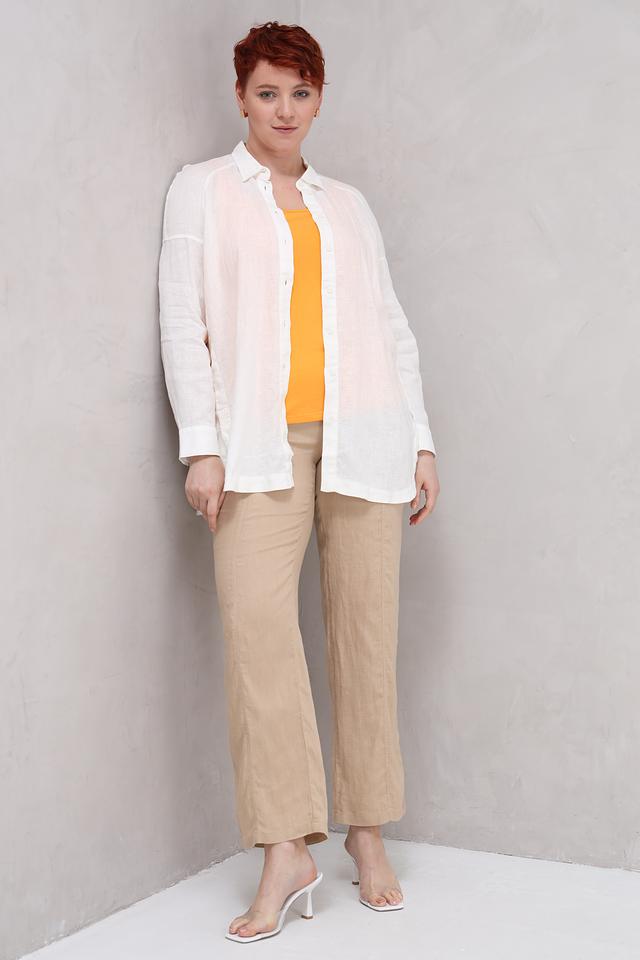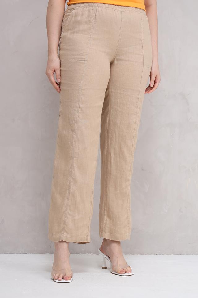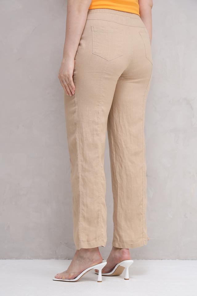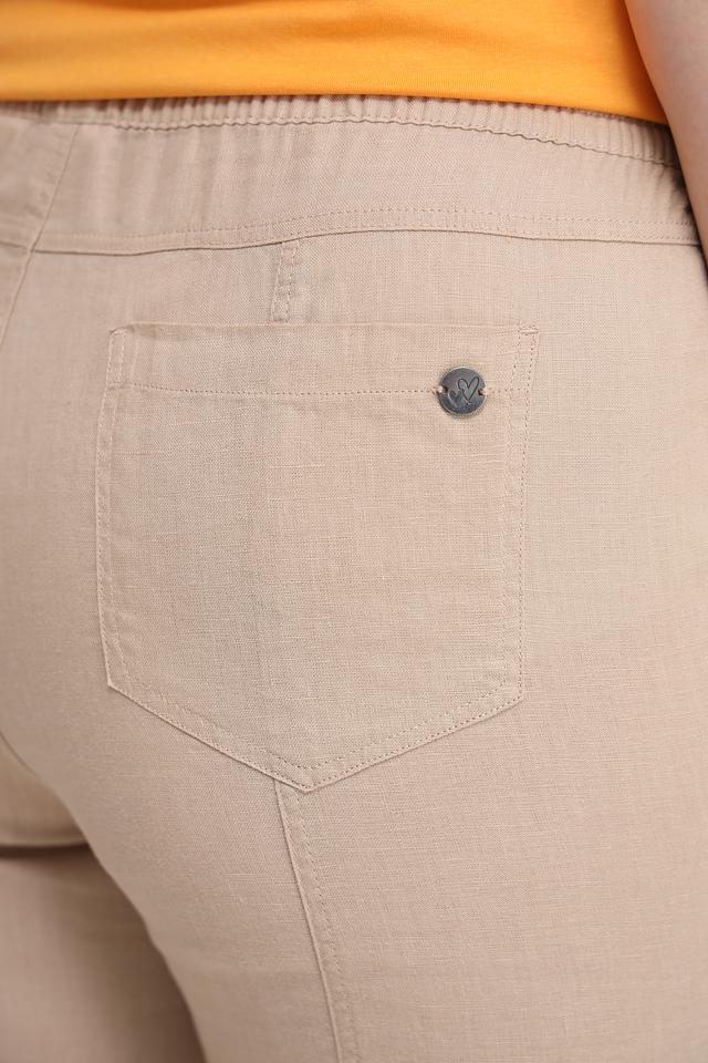 Брюки имеют прямой крой, обеспечивающий свободу движений, и эластичный пояс с кулиской для комфортной посадки по фигуре. По бокам расположены удобные карманы. Ткань льна приятна к телу, хорошо пропускает воздух и обладает отличными влагопоглощающими свойствами, что делает эти брюки идеальным выбором для теплого времени года.
