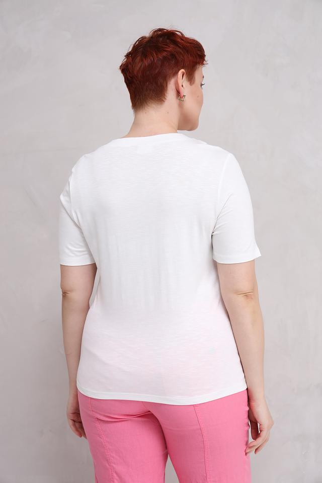 Футболка имеет V-образный вырез горловины, который подчеркивает линию шеи и декольте. Короткие рукава делают ее идеальным выбором для теплой погоды. Состав ткани: 95% вискоза, 5% эластан. Эта футболка станет отличным выбором для повседневной носки, прогулок и встреч с друзьями.