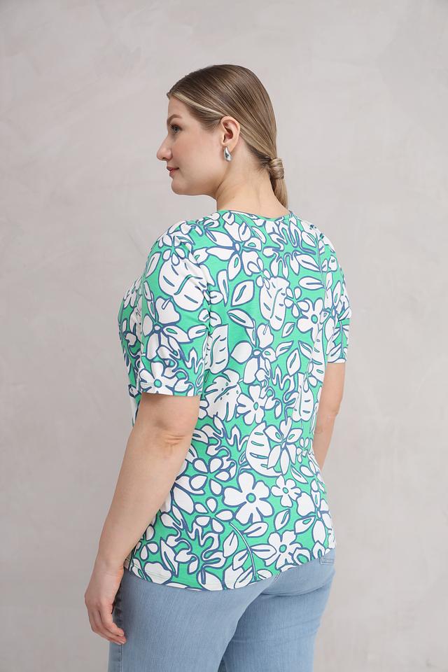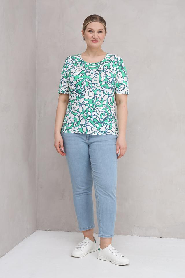 Женская футболка Lebek мятного цвета с ярким цветочным принтом станет отличным дополнением к вашему гардеробу. Модель выполнена из мягкой вискозы с добавлением эластана, обеспечивая комфорт и свободу движений. Состав: вискоза 95%, эластан 5%