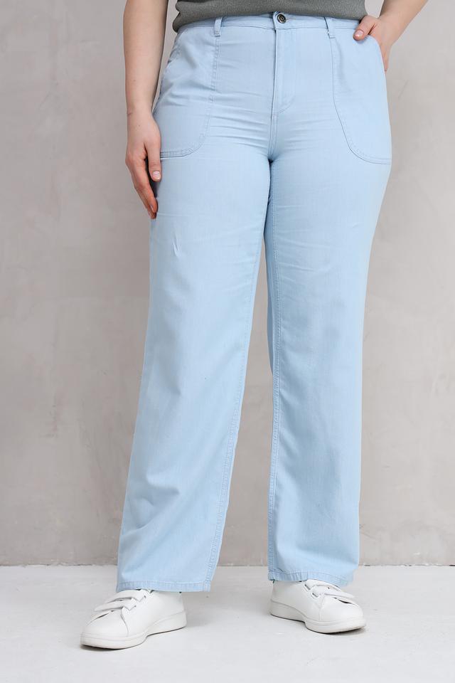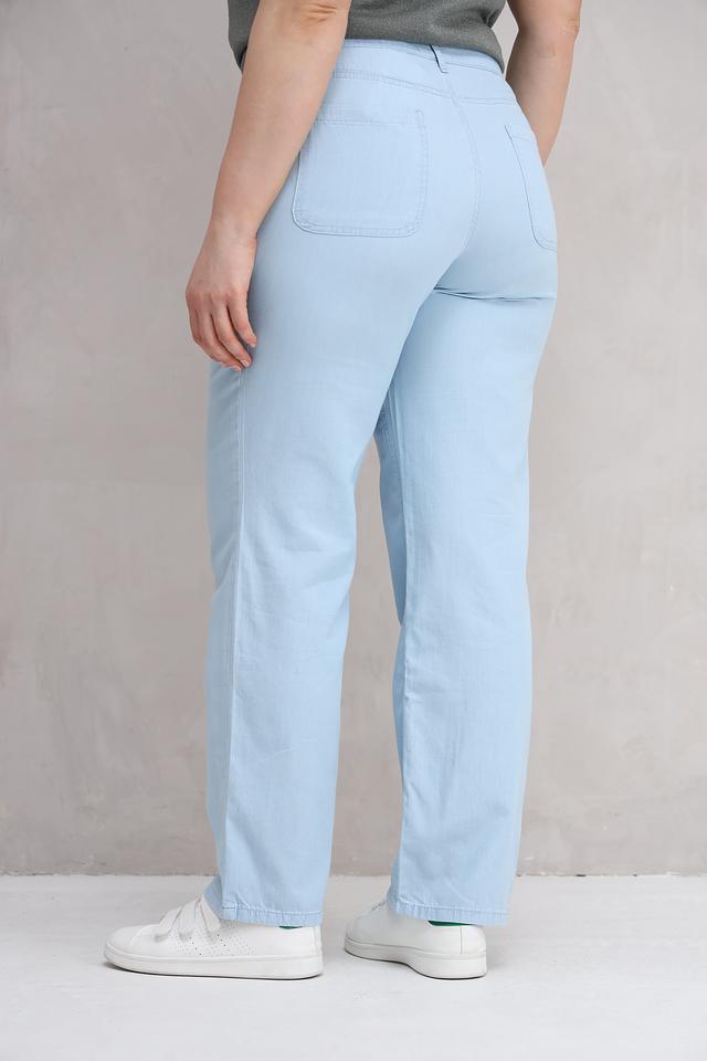 Женские брюки Lebek голубого цвета с клёшем и боковыми карманами станут отличным дополнением к вашему гардеробу. Модель выполнена из мягкой и приятной к телу ткани, обеспечивающей комфорт в носке. Состав: вискоза 78%, полиэстер 17%, эластан 5%