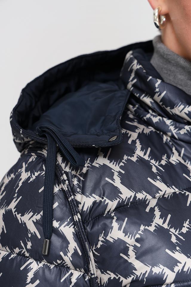 Куртка имеет стеганую фактуру, которая придает ей современный и стильный вид. Капюшон с принтом добавляет оригинальности образу. Застежка-молния обеспечивает удобство и надежность.