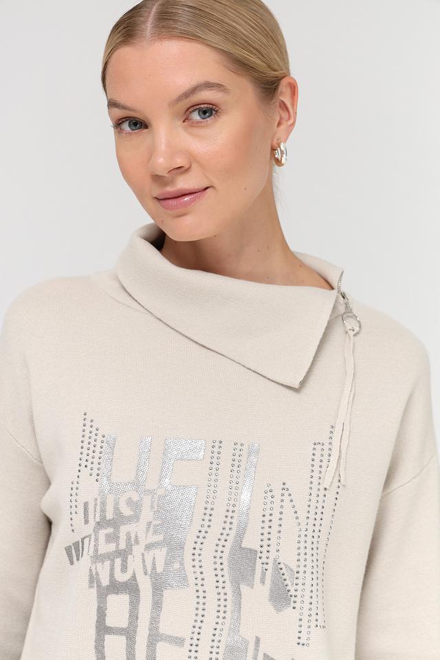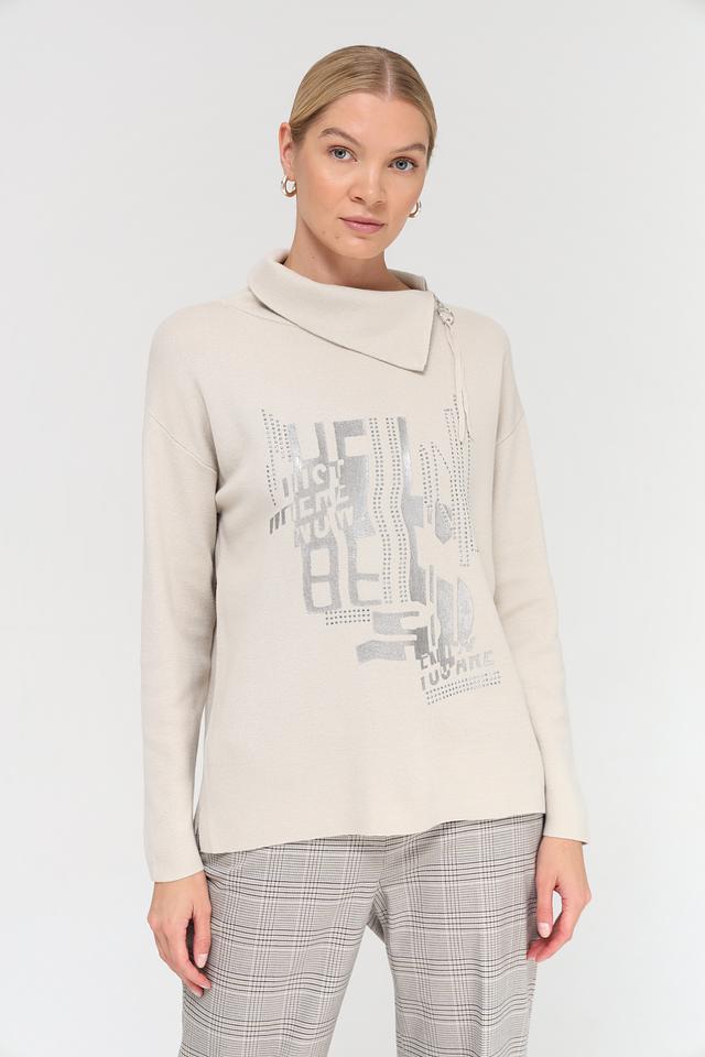Бежевый пуловер от Lebek с оригинальным принтом и высоким воротником. Изготовлен из мягкого сочетания хлопка и полиакрила, обеспечивающего комфорт и удобство в носке. Состав: хлопок 50%, полиакрил 50%