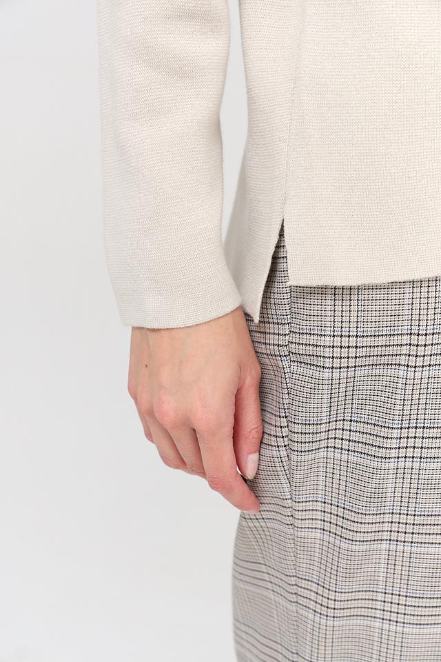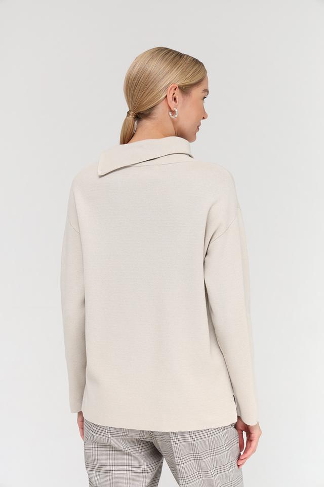 Модель имеет удобный крой, высокий воротник и небольшой разрез с застежкой на плече, что добавляет изюминку образу. Пуловер идеально сочетается с брюками, джинсами или юбками, позволяя создавать разнообразные стильные образы.