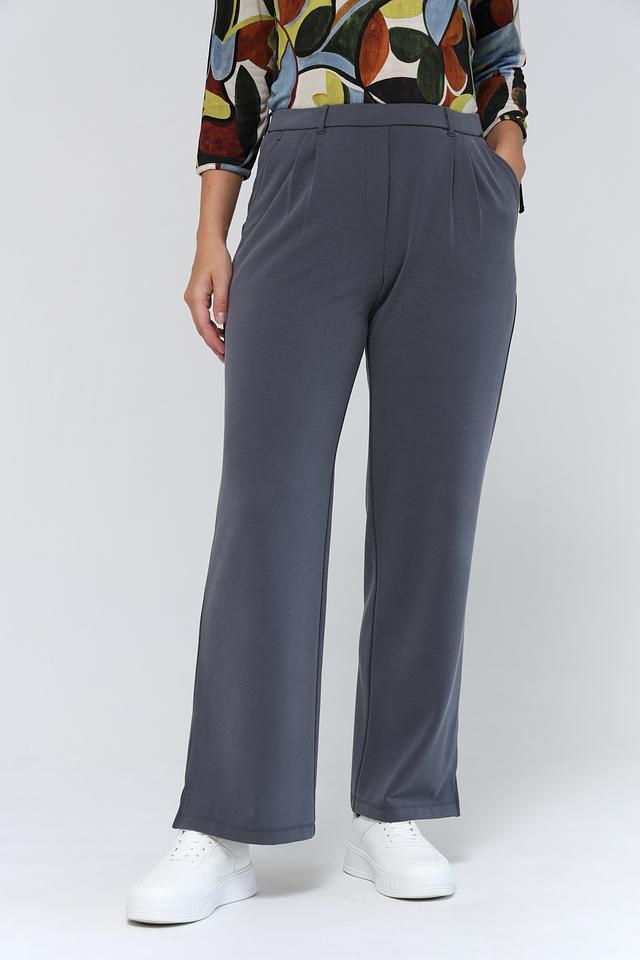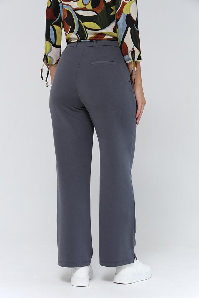 Брюки оснащены боковыми карманами, что делает их практичными и функциональными. Застежка на молнию и пуговицу обеспечивает надежную фиксацию. Универсальный серый цвет легко сочетается с различными элементами гардероба, позволяя создавать разнообразные образы.