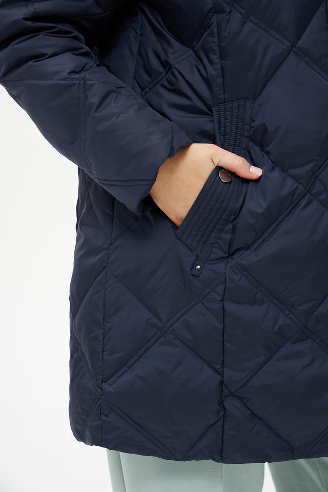 Куртка имеет стеганую фактуру, которая придает ей современный вид. Меховой капюшон не только согревает, но и добавляет образу элегантности. Застежка-молния и кнопки обеспечивают надежную фиксацию, а удобные карманы позволяют хранить необходимые мелочи.