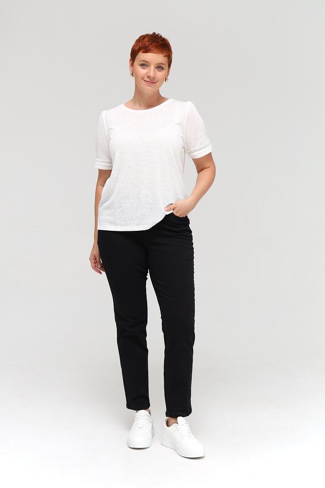 Джинсы имеют прямой крой, обеспечивающий свободу движений и комфортную посадку. Высокая посадка визуально удлиняет ноги и подчеркивает талию. Ткань состоит из 97% хлопка и 3% эластана, что обеспечивает мягкость, приятные тактильные ощущения и небольшую эластичность.