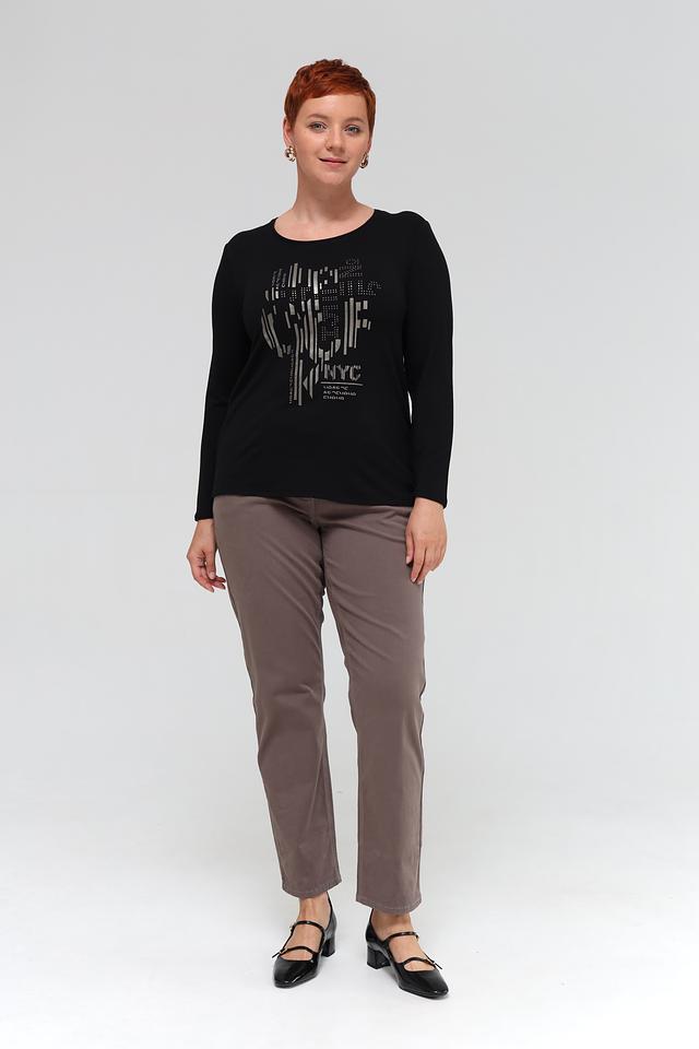 Футболка имеет прямой крой и длинные рукава. Главная особенность – стильный принт "NYC", выполненный в серебристых тонах, который добавляет образу современности и динамики.