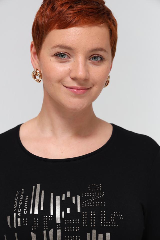 Состав ткани: 95% вискоза, 5% эластан. Эта комбинация материалов обеспечивает мягкость, воздухопроницаемость и лёгкость в уходе. Футболка идеально подойдёт для создания как повседневных, так и более нарядных образов.