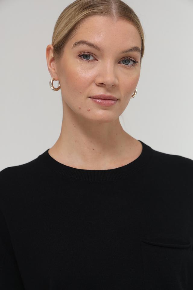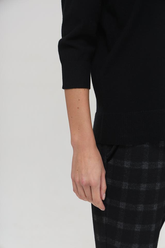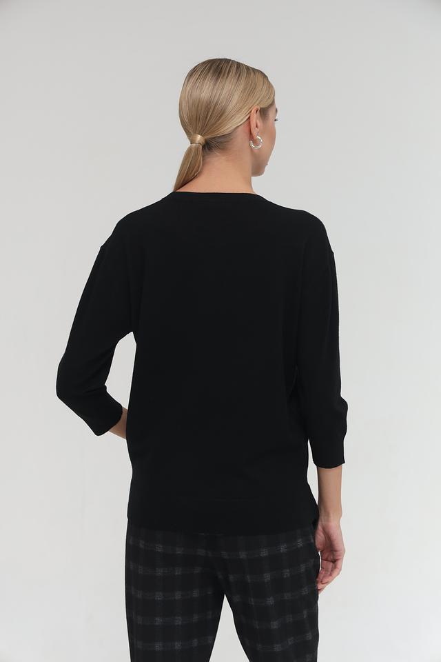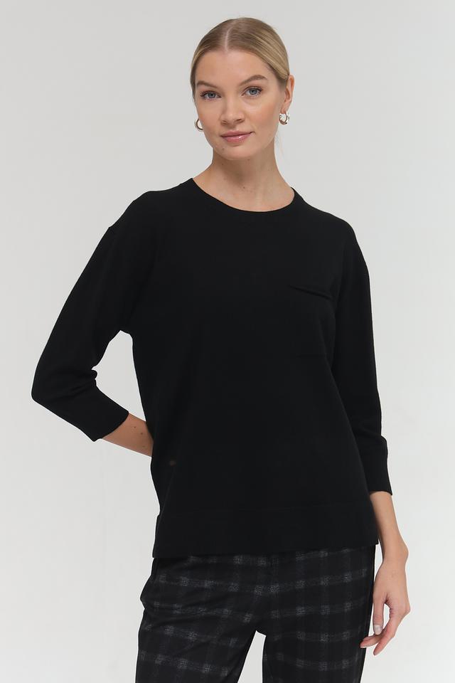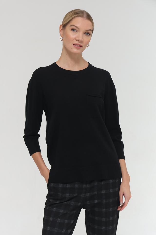 Пуловер выполнен из мягкого и приятного к телу сочетания полиакрила, полиэстера, модала и полиамида, что обеспечивает комфорт в носке и сохранение формы. Рукав 3/4 добавляет образу изысканности, а небольшой карман на груди придает оригинальность.