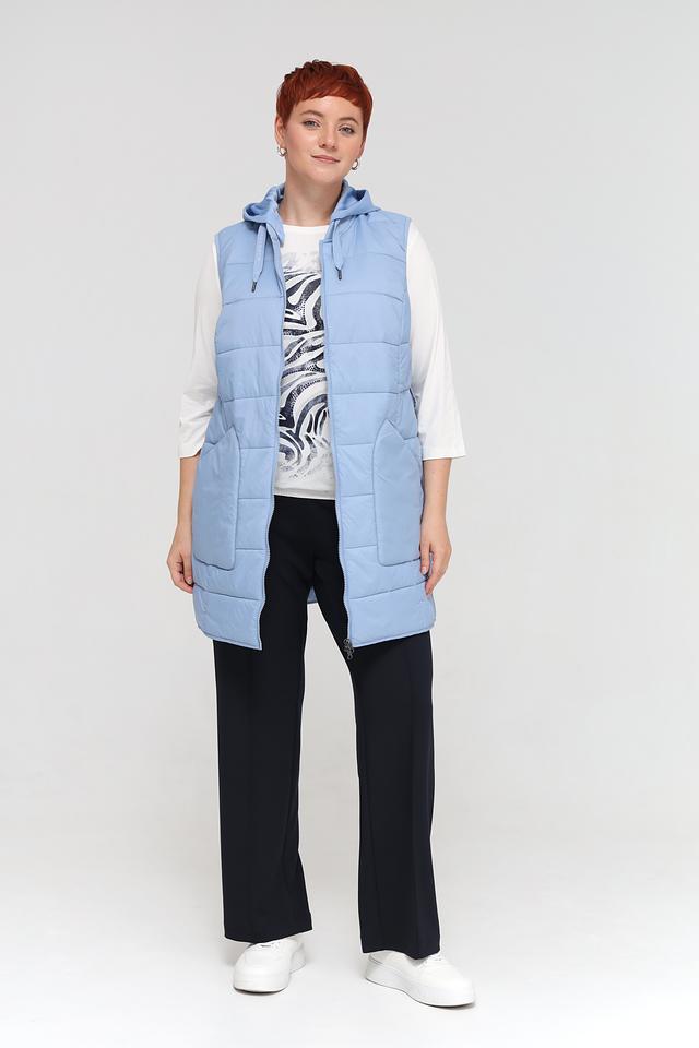 Голубой стеганый жилет от Lebek – это стильное и практичное решение для прохладной погоды. Удлиненный крой и капюшон обеспечивают дополнительный комфорт и защиту от ветра, а удобные карманы добавляют функциональности. Состав: полиамид 100%