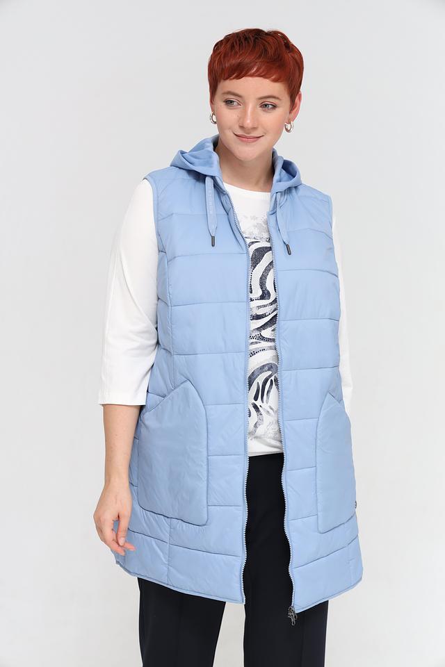 Жилет имеет удлиненный крой, который обеспечивает дополнительное тепло и защиту от холода. Стеганая текстура придает ему современный и стильный вид. Капюшон добавляет практичности, защищая от ветра и небольшого дождя.