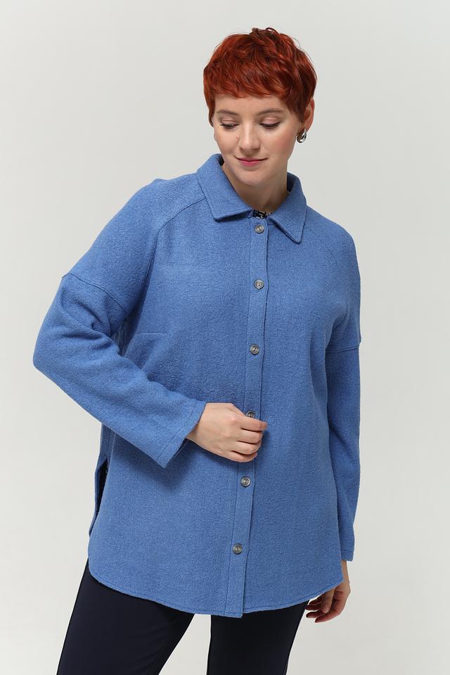 Голубая рубашка оверсайз от Lebek выполнена из мягкой ткани с добавлением шерсти. Модель с отложным воротником и застёжкой на пуговицы станет отличным дополнением к вашему гардеробу. Состав: вискоза 60%, шерсть 40%