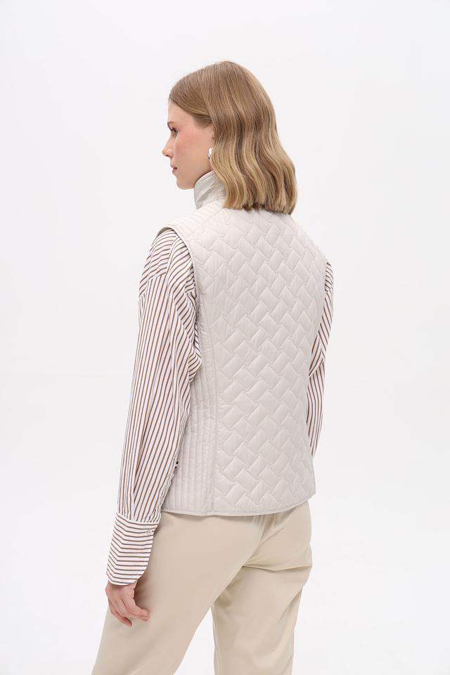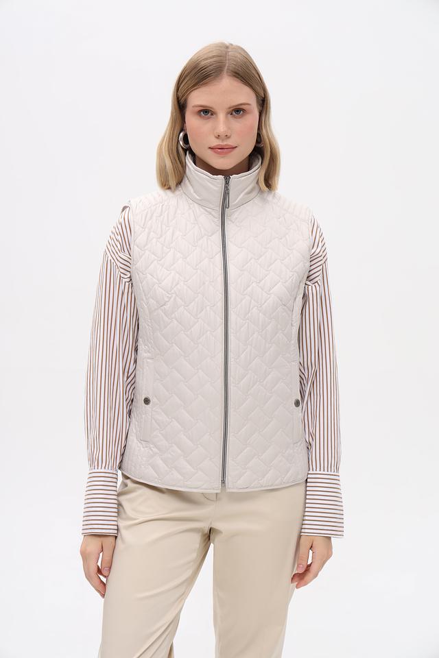 Жилет имеет стеганую фактуру, которая придает ему современный вид. Застежка-молния позволяет быстро и удобно надевать и снимать жилет. Высокий воротник защищает от ветра.