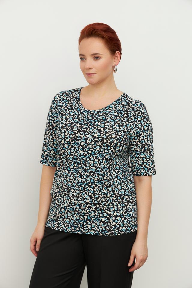 Женская футболка Lebek с оригинальным цветочным принтом. Изготовлена из мягкой вискозы с добавлением эластана для комфорта и хорошей посадки. Состав: вискоза 92%, эластан 8%