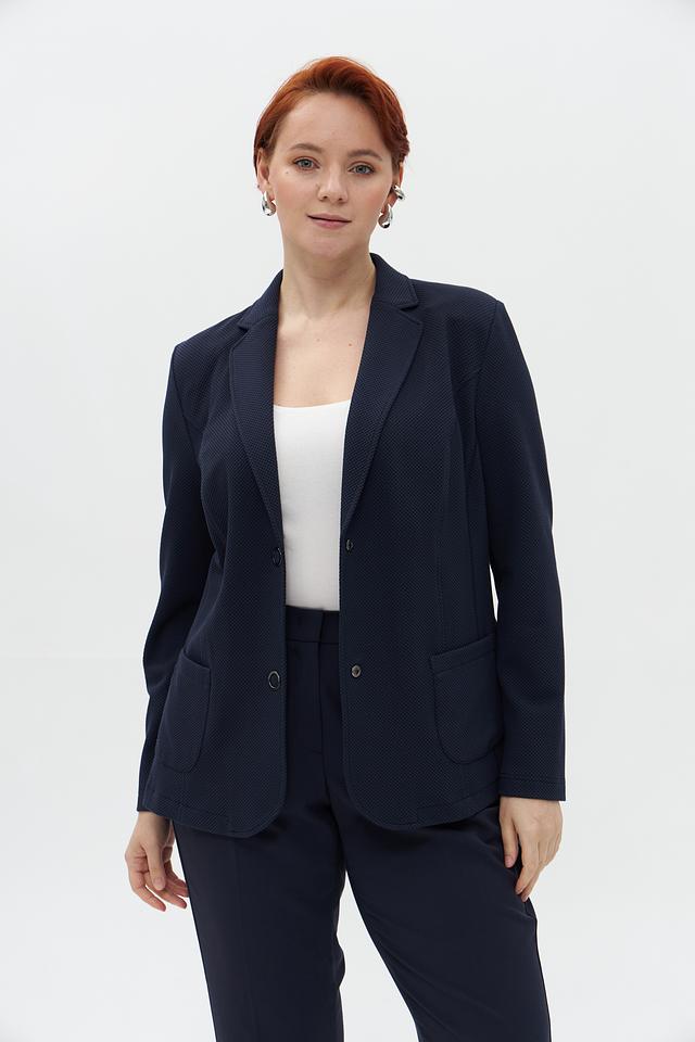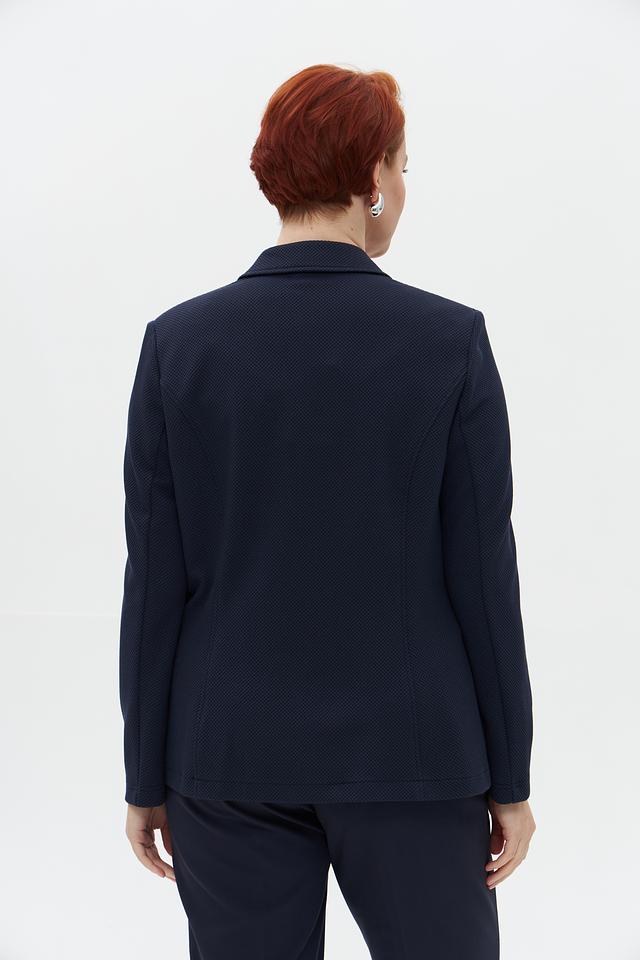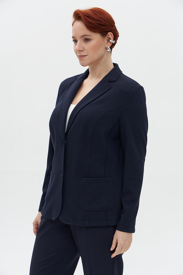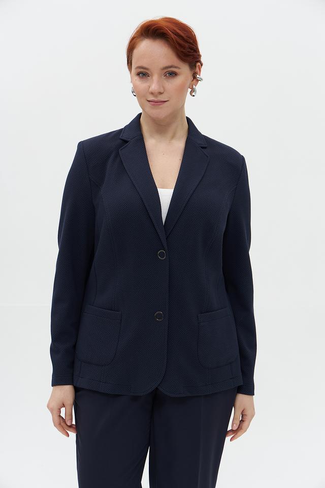 Тёмно-синий жакет от Lebek — элегантная модель приталенного силуэта с классическим лацканом. Жакет выполнен из текстурированной ткани с мелким рисунком, имеет застежку на пуговицы и функциональные карманы. Состав: полиэстер 82%, вискоза 14%, эластан 4%
