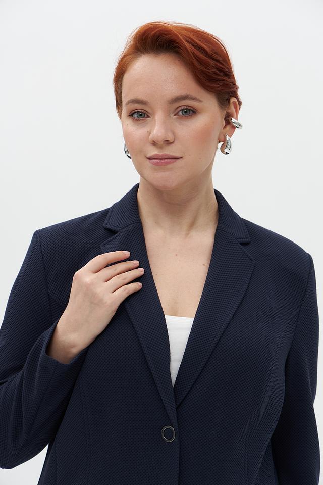Состав ткани: 82% полиэстер, 14% вискоза, 4% эластан. Этот состав обеспечивает комфорт в носке, хорошую посадку по фигуре и устойчивость к сминанию. Жакет идеально подходит для создания деловых и повседневных образов.