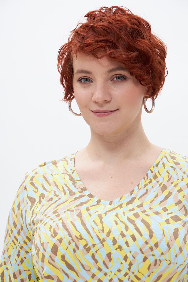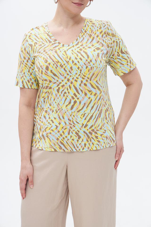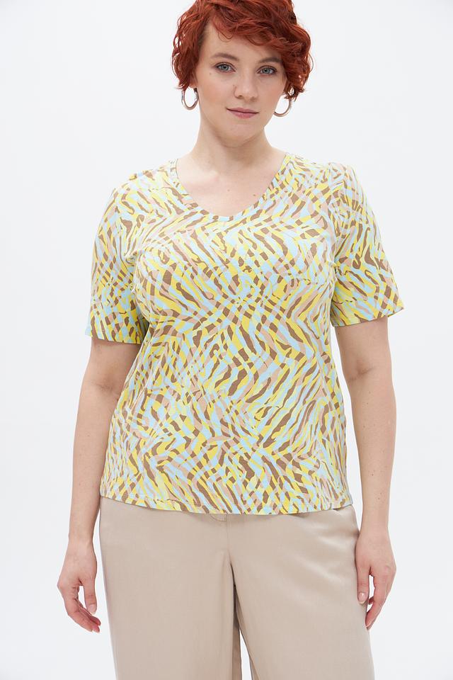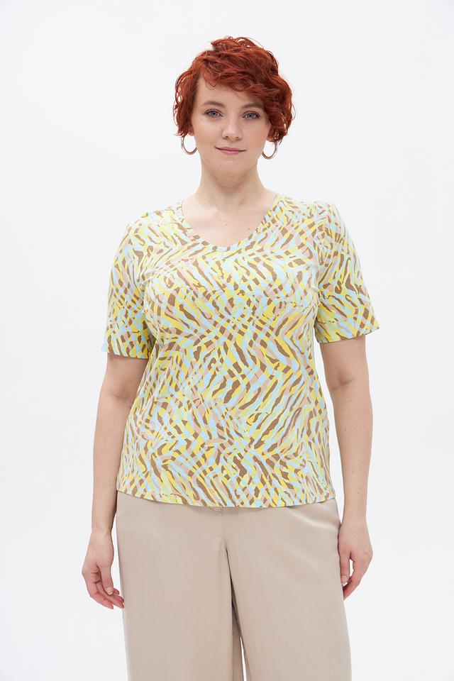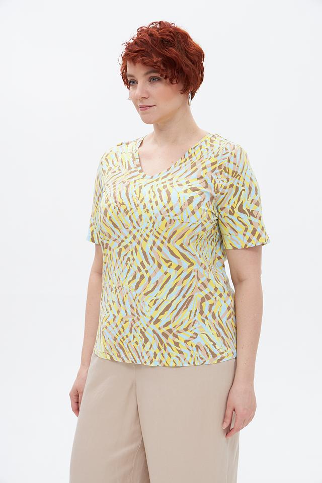 Футболка Barbara Lebek — стильное и комфортное решение для создания повседневного образа. Модель выполнена в жёлтом цвете и украшена оригинальным абстрактным принтом, напоминающим окрас зебры.