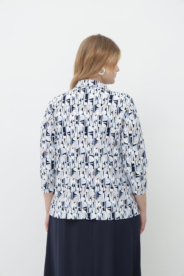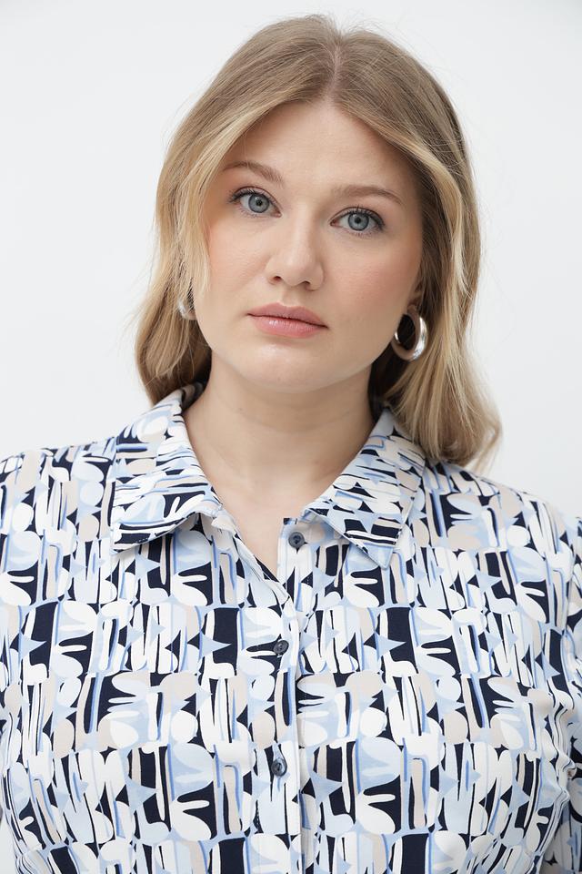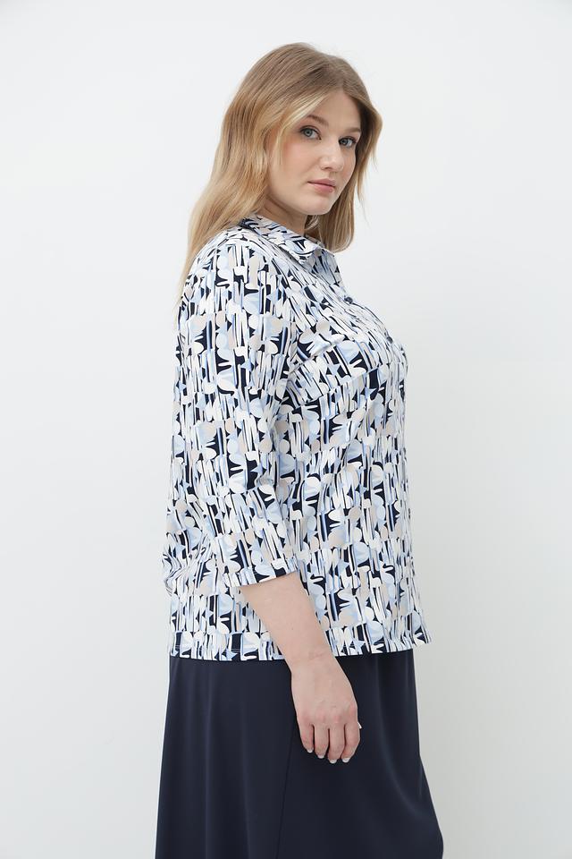 Женская блузка Lebek голубого цвета с оригинальным геометрическим принтом. Модель выполнена из мягкого хлопка с добавлением эластана для комфорта и свободы движений. Состав: хлопок 92%, эластан 8%