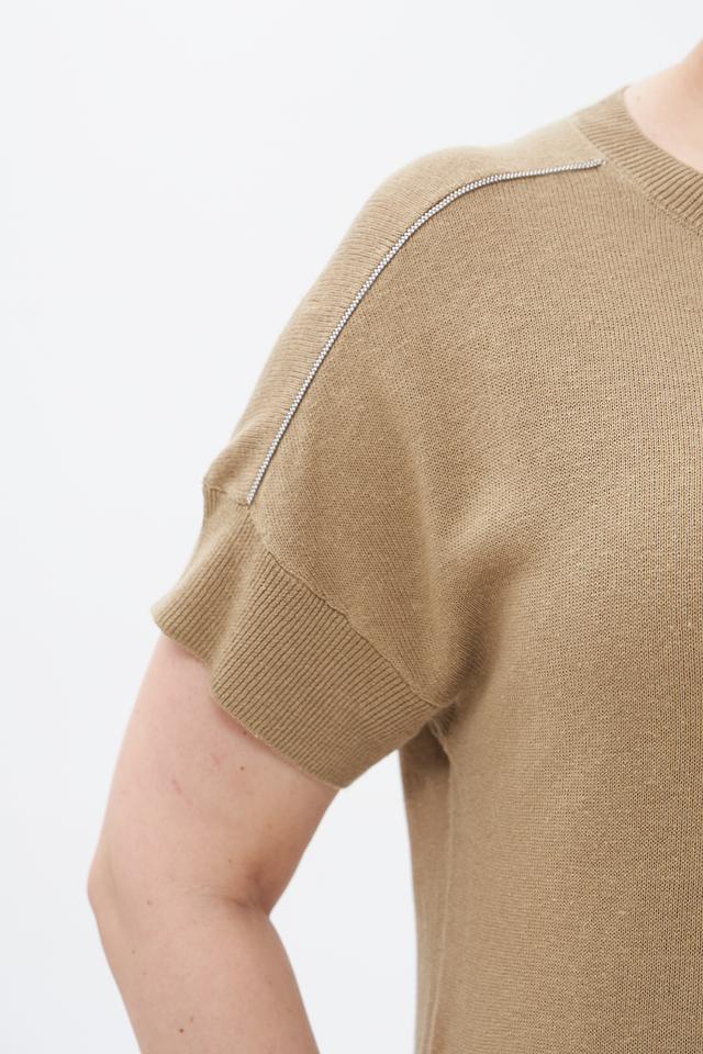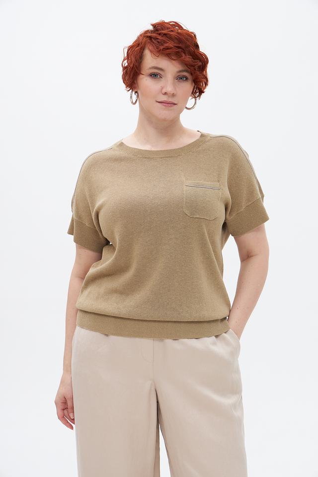 Бежевый пуловер от Lebek – это стильный и комфортный выбор на каждый день. Изготовлен из натурального хлопка с добавлением льна, обеспечивающего приятные тактильные ощущения. Короткий рукав и декор в виде кармана. Состав: хлопок 55%, лен 45%
