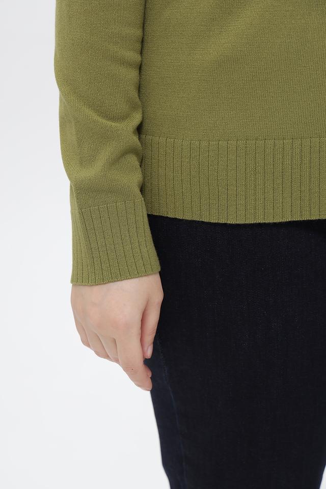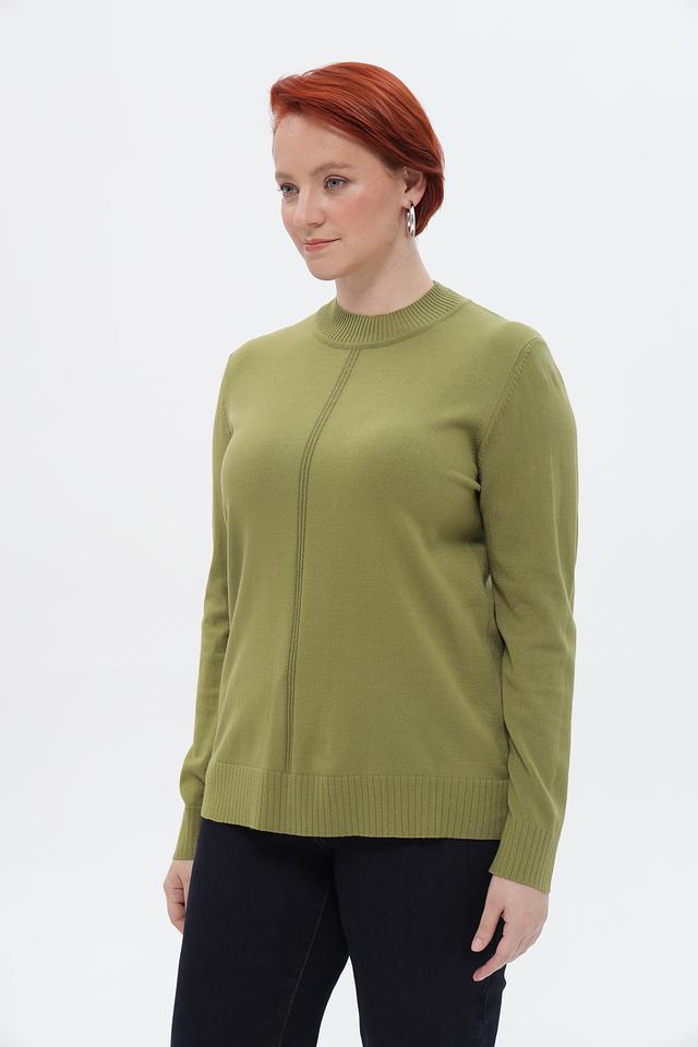 Женский пуловер от бренда Lebek выполнен в спокойном оливковом оттенке. Модель имеет прямой крой и удобную посадку по фигуре.