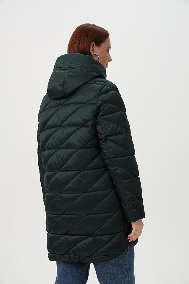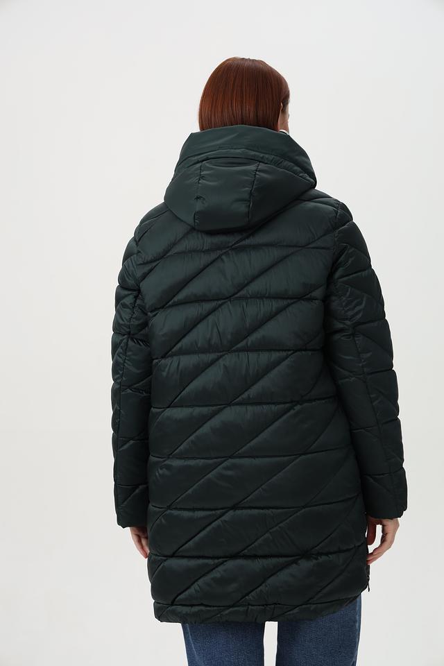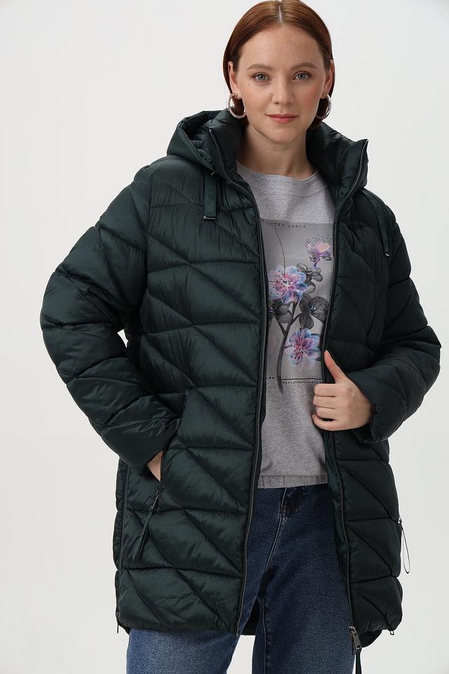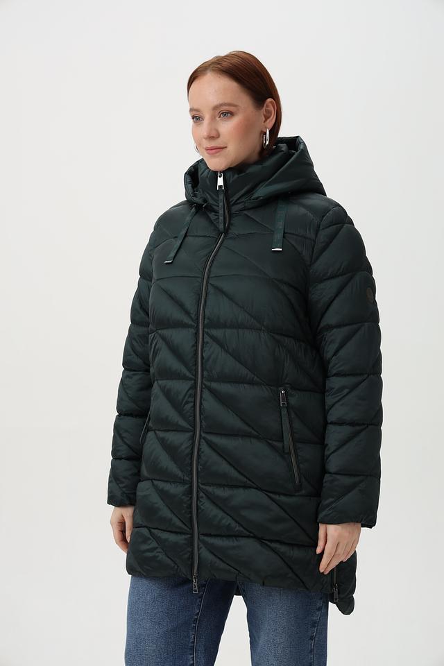 Тёмно-зелёная стеганая куртка Lebek – это стильное и практичное решение для прохладной погоды. Модель имеет удобный капюшон и застегивается на молнию, обеспечивая комфорт и защиту от ветра. Состав: полиэстер 60%, полиамид 40%