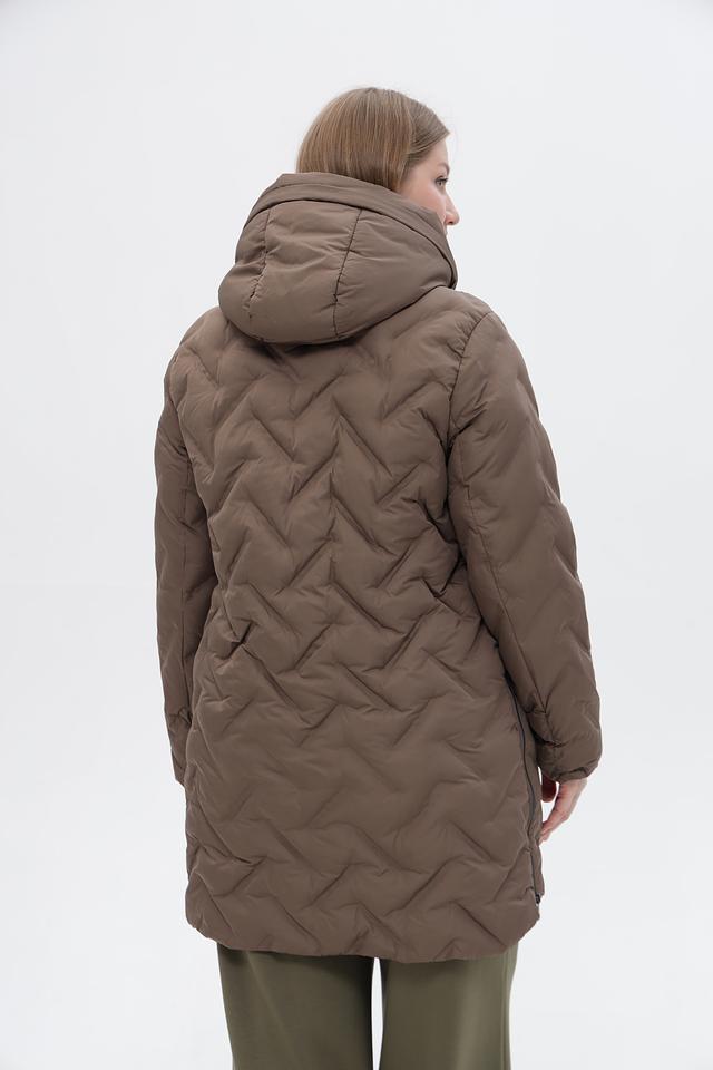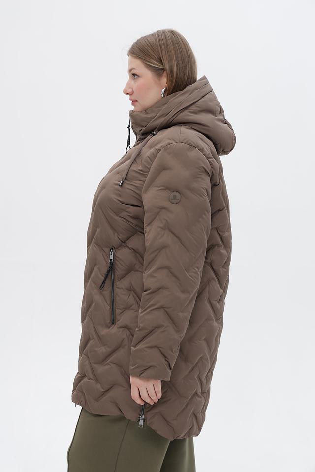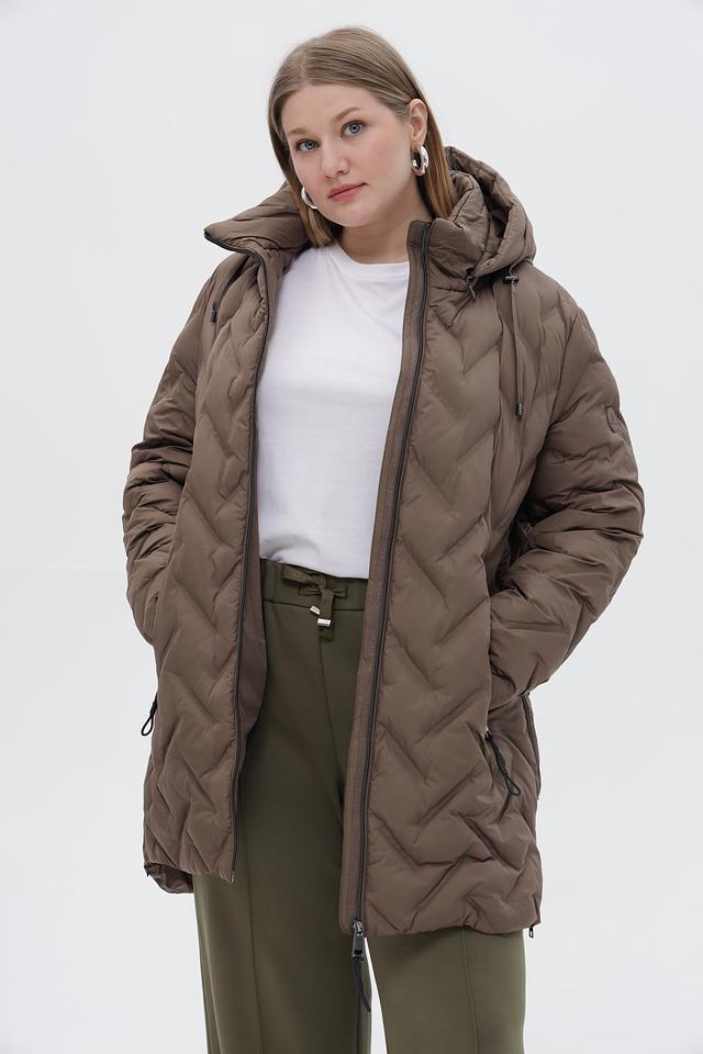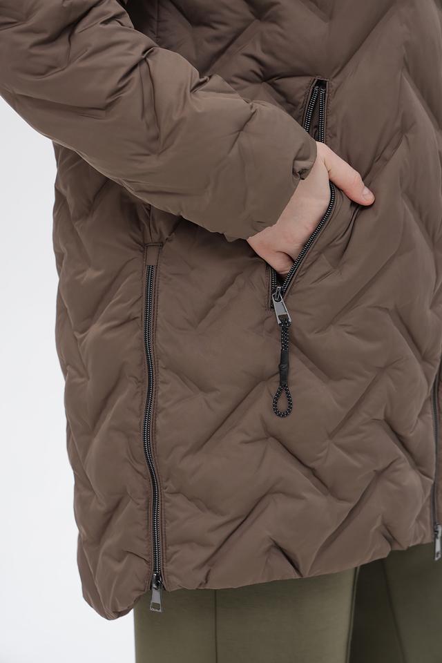 Куртка оснащена двумя боковыми карманами на молниях, что позволяет безопасно хранить необходимые вещи. Длина куртки миди, обеспечивающая комфорт и свободу движений.