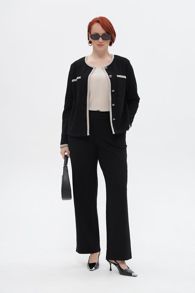 Представляем элегантные брюки от бренда Lebek, выполненные в классическом чёрном цвете. Эта модель станет незаменимой частью вашего гардероба, позволяя создавать разнообразные образы — от деловых до повседневных.