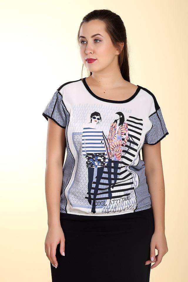Основной цвет блузы – белый, но её украшает эффектный принт с изображением девушек в стильной одежде. Принт выполнен в ярких и насыщенных цветах, что делает блузу особенно привлекательной.