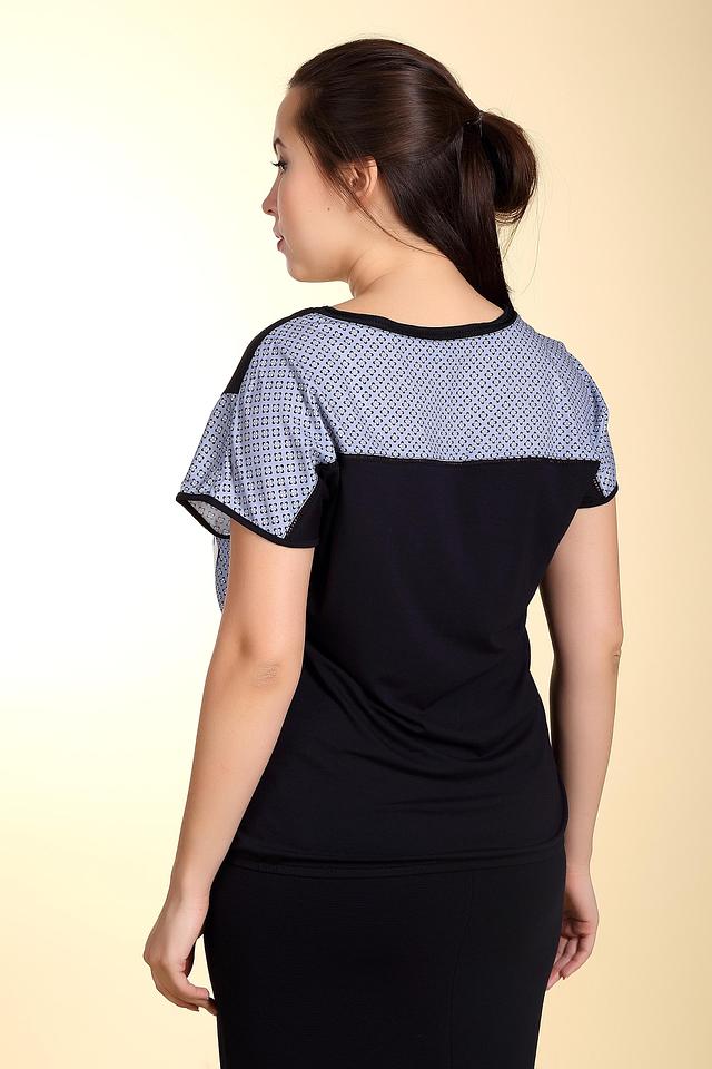 Блуза имеет короткие рукава и свободный крой, что делает её идеальной для теплой погоды. Она прекрасно сочетается с юбками, брюками и джинсами, позволяя создавать разнообразные образы. Состав: вискоза 95%, эластан 5%.
