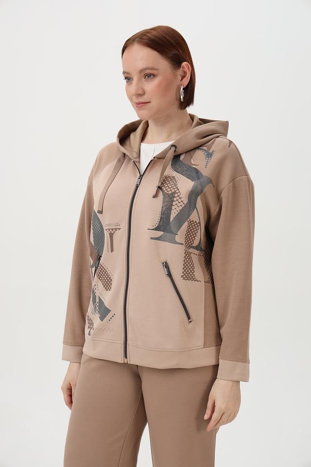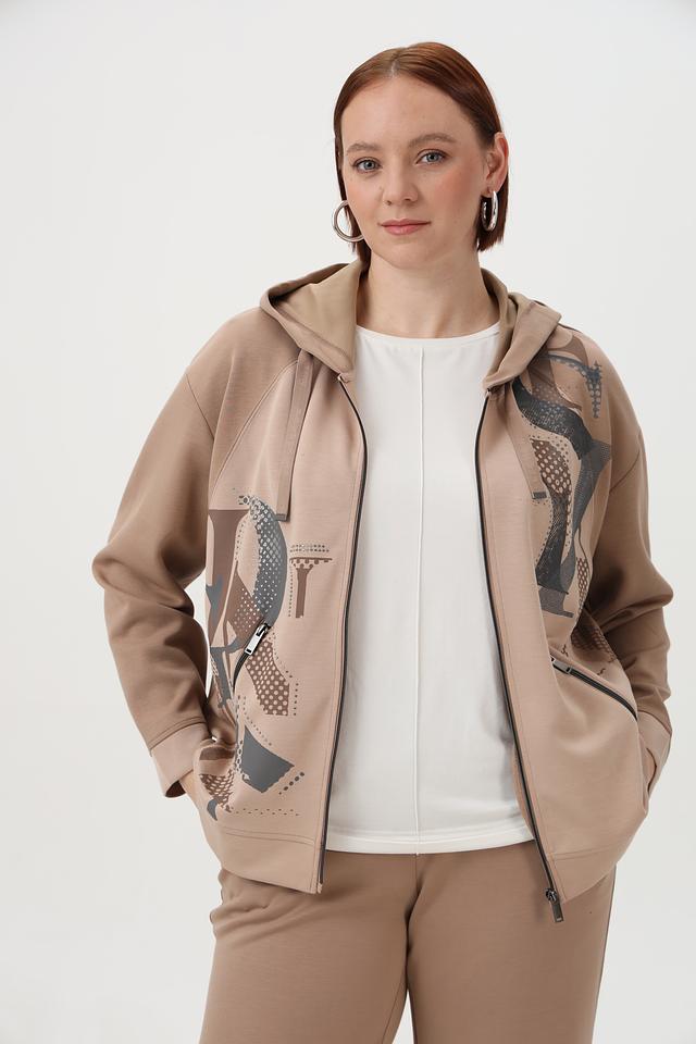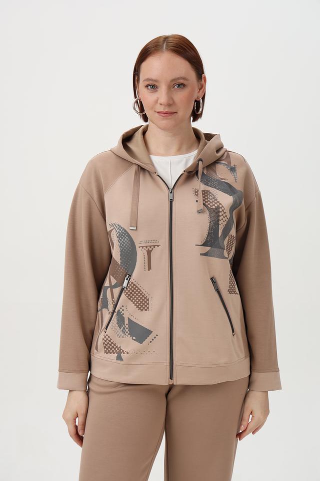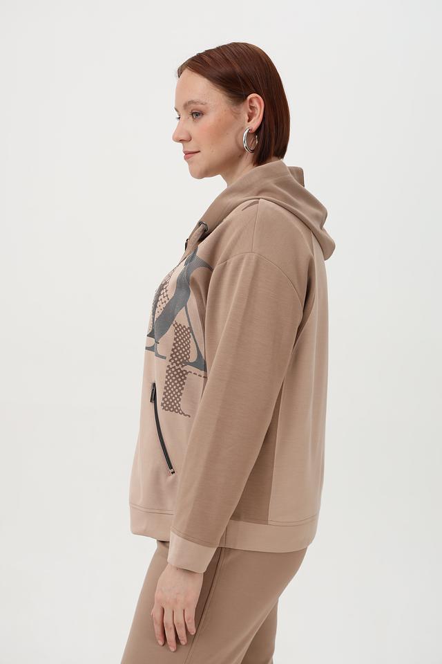 Женское худи от бренда Barbara Lebek выполнено в бежевом цвете с эффектным графическим принтом. Модель имеет удобную застежку-молнию, капюшон со шнурками и функциональные боковые карманы на молнии.