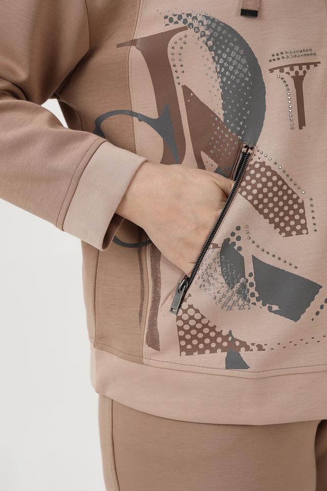 Бежевое худи от Barbara Lebek с оригинальным принтом и удобной застежкой-молнией. Изготовлено из мягкой вискозы с добавлением полиэстера и эластана для комфорта и свободы движений. Состав: полиэстер 50%, вискоза 45%, эластан 5%