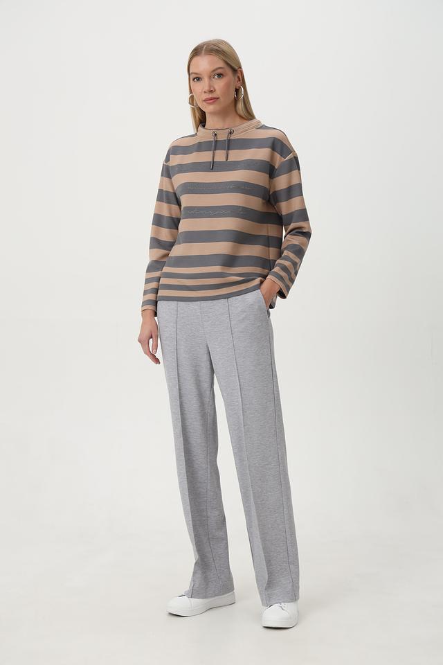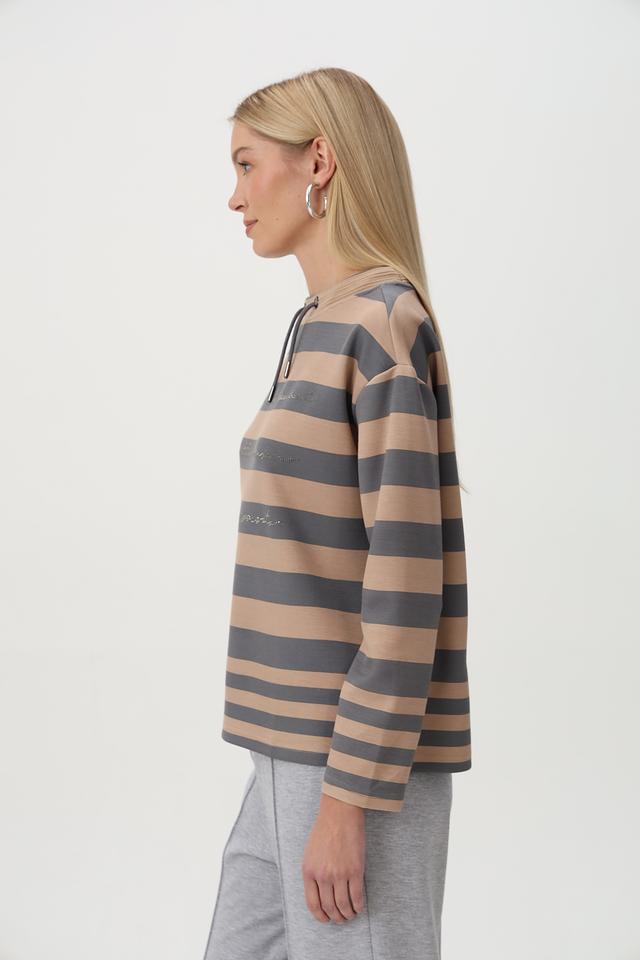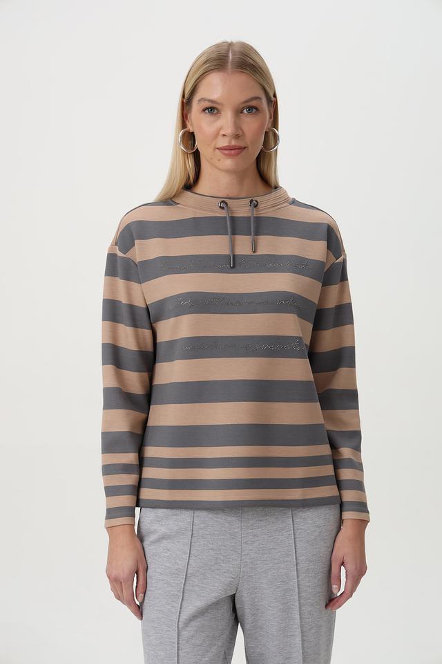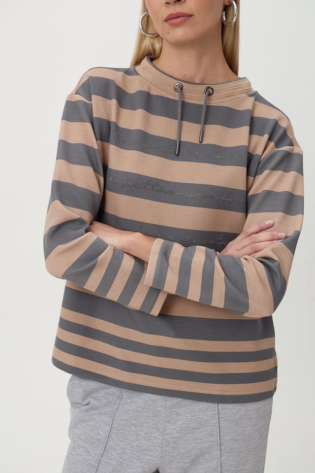 Бежевый пуловер Barbara Lebek с горизонтальной полоской и капюшоном – стильное и комфортное решение для повседневного гардероба. Изготовлен из мягкого трикотажа с добавлением вискозы и полиэстера. Состав: полиэстер 50%, вискоза 45%, эластан 5%