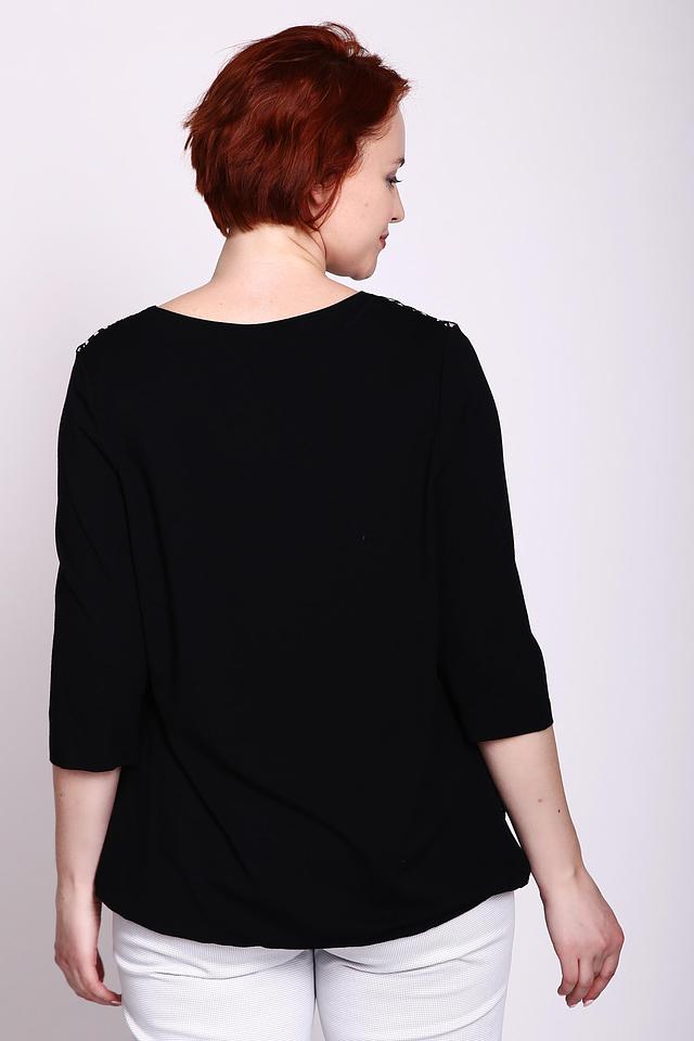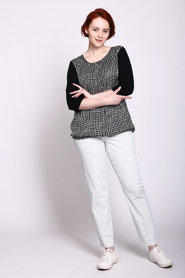 Блуза имеет округлый вырез горловины и короткие рукава 3/4. Изготовлена из качественной вискозы с добавлением эластана, что делает её приятной на ощупь и обеспечивает хорошую драпировку.