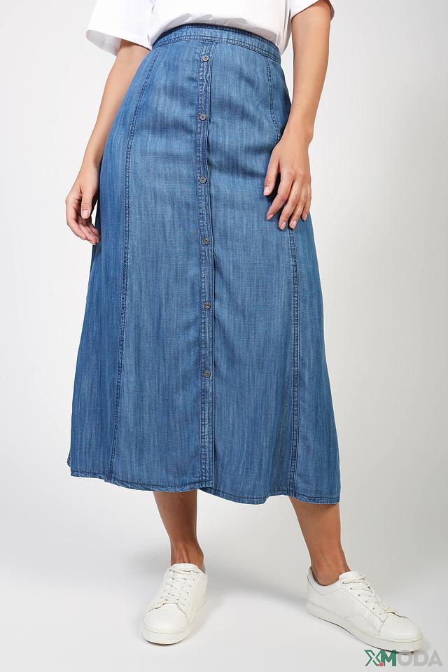 Джинсовая юбка Lebek синего цвета – стильная и удобная модель длиной миди с застежкой на пуговицы. Изготовлена из 100% лиоцела, обеспечивающего комфорт и приятные ощущения при носке. Состав: лиоцел 100%