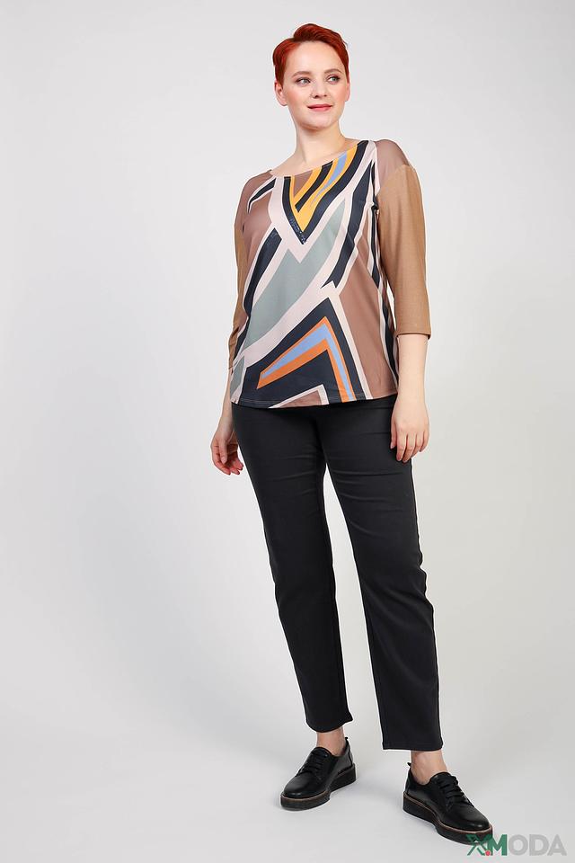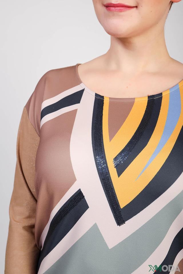 Женская футболка Barbara Lebek бежевого цвета с ярким геометрическим принтом. Модель выполнена из мягкой вискозы с добавлением металлизированной нити, что придает ей особый блеск и изысканность. Состав: вискоза 67%, метализ.нить 15%, полиамид 13%, эластан 5%