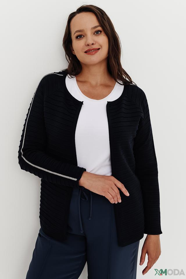 Жакет имеет удобный крой, который обеспечивает комфортную посадку по фигуре. Декоративная полоска на рукавах добавляет модели изюминку и делает её более интересной.