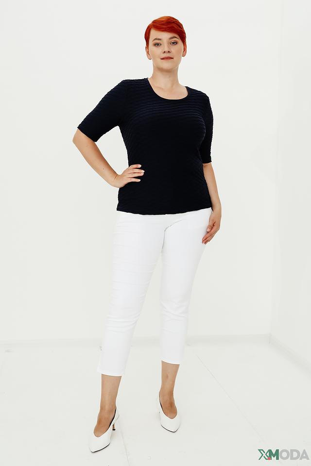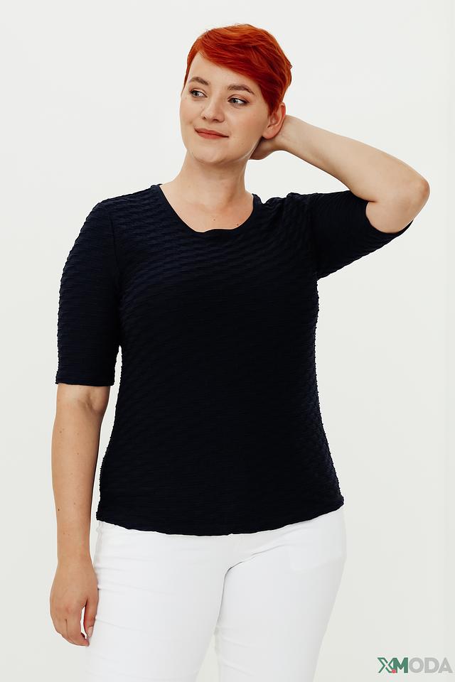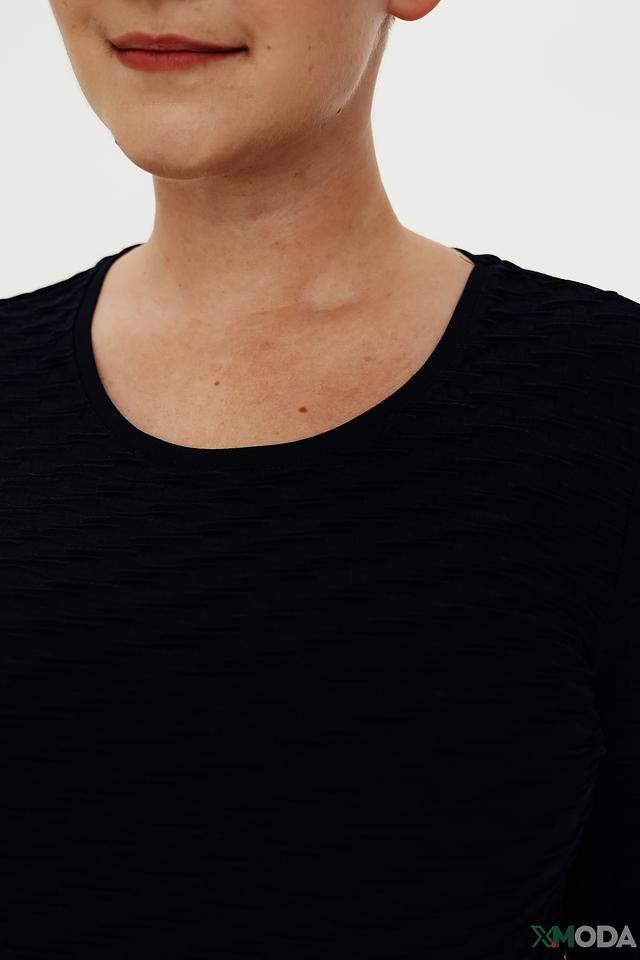 Особенностью данной модели является её текстурированная поверхность, которая придает ей изысканность и оригинальность. Ткань, состоящая из полиэстера, вискозы и эластана, обеспечивает комфорт в носке, приятные тактильные ощущения и хорошую посадку по фигуре. Благодаря эластану, топ отлично тянется и не сковывает движений.
