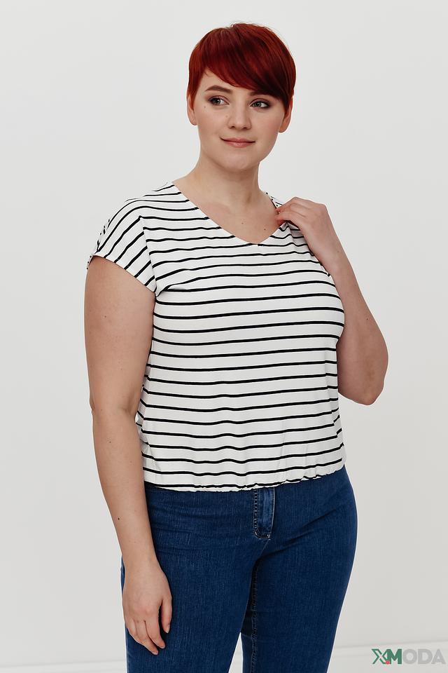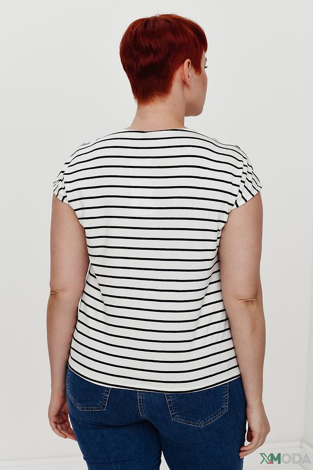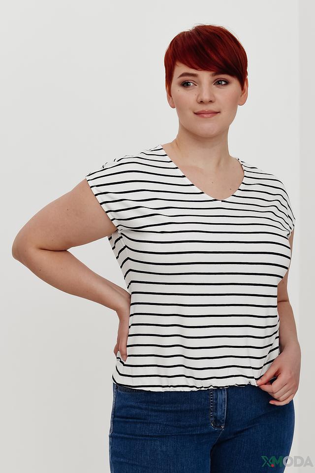 Женская футболка Lebek выполнена в классическую бело-синюю полоску. Модель с V-образным вырезом и короткими рукавами станет отличным дополнением к вашему гардеробу. Изготовлена из мягкой и приятной к телу вискозы с добавлением эластана. Состав: вискоза 92%, эластан 8%
