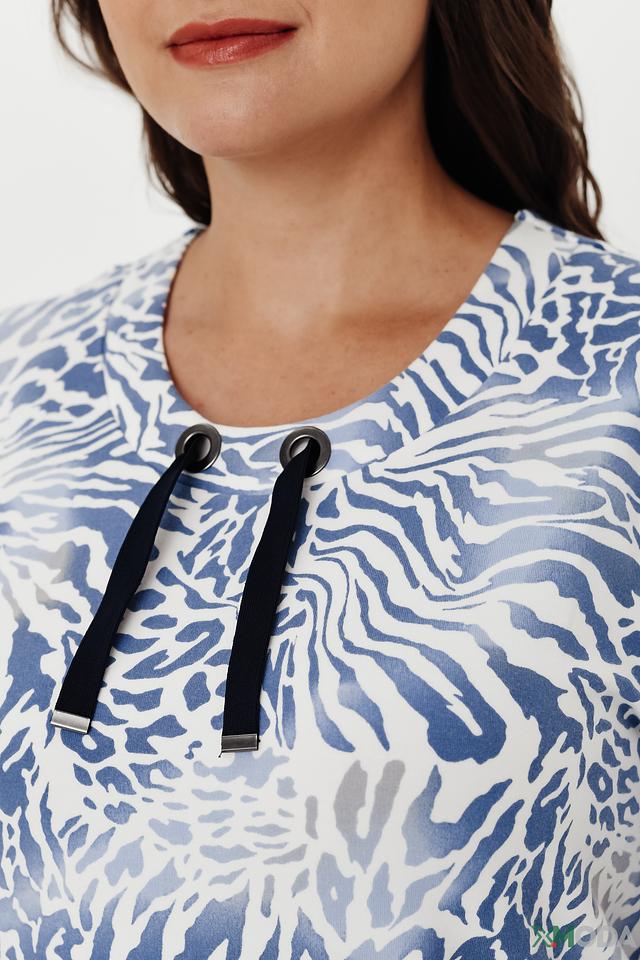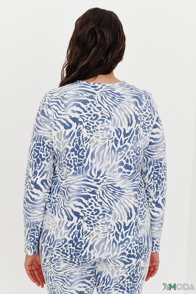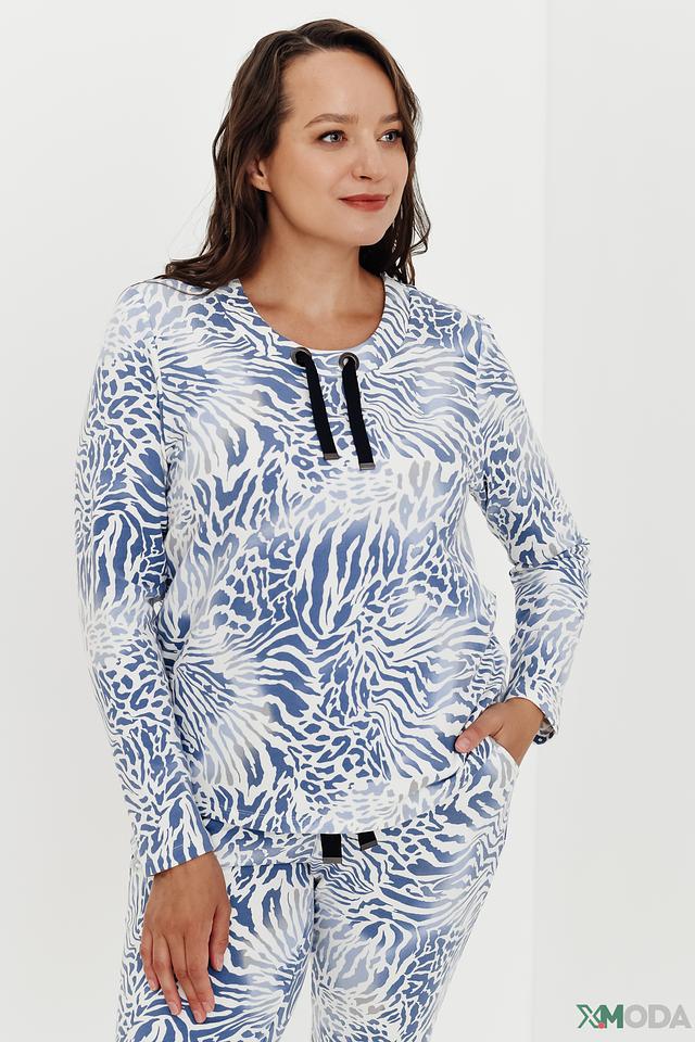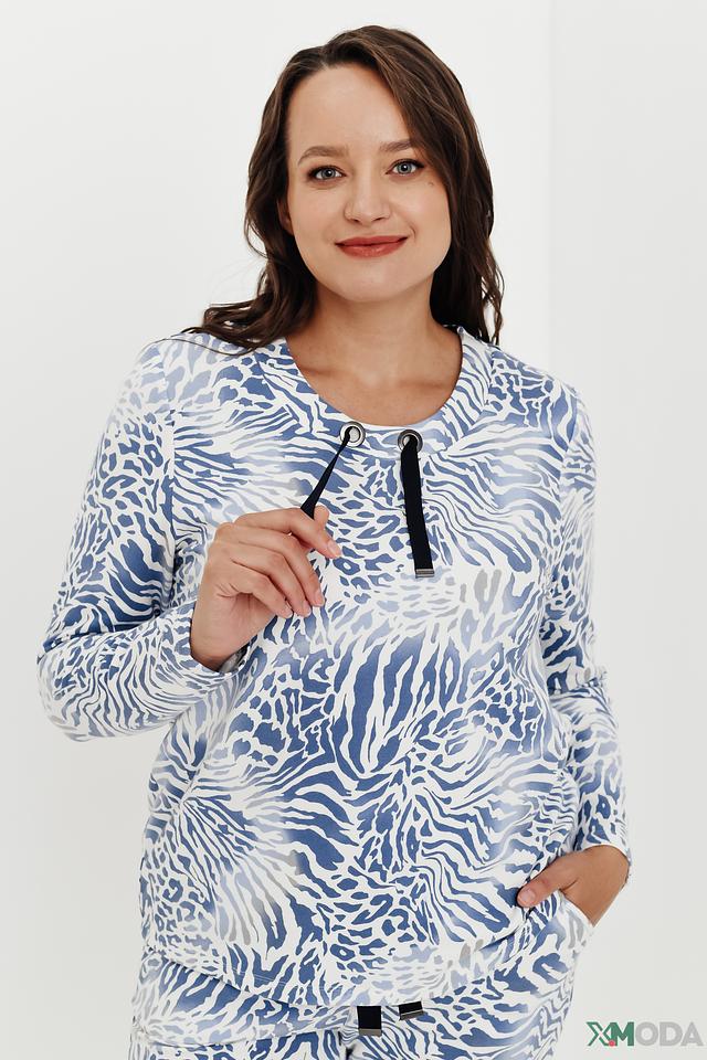 Женский пуловер Lebek голубого цвета с оригинальным принтом "зебра" станет стильным дополнением к вашему гардеробу. Модель выполнена из мягкого и приятного к телу трикотажа с добавлением хлопка и модала, что обеспечивает комфорт в носке. Состав: хлопок 47%, модал 47%, эластан 6%