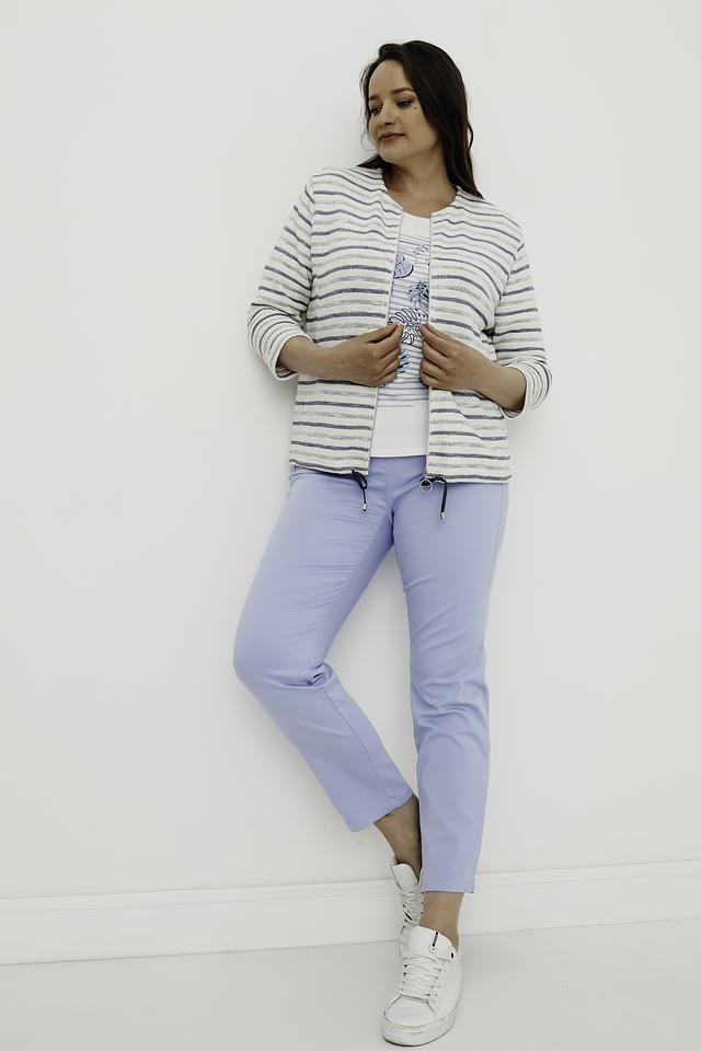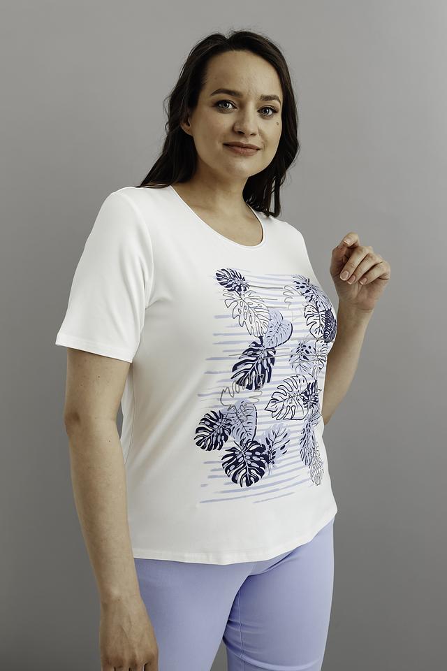 Основной цвет футболки – белый, что делает ее универсальной и легко сочетаемой с другими элементами одежды. Главная особенность модели – яркий цветочный принт в синих тонах, который добавляет образу свежести и оригинальности.