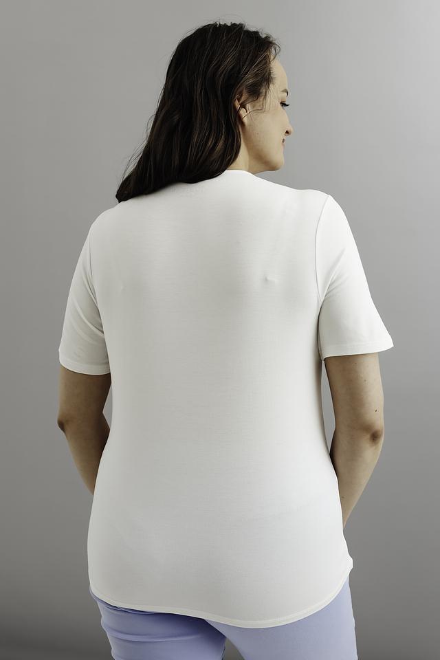 Футболка имеет классический крой с короткими рукавами и круглым вырезом горловины. Она идеально подходит для создания повседневных образов, а также для занятий спортом или активного отдыха. Состав ткани: 95% вискоза, 5% эластан.