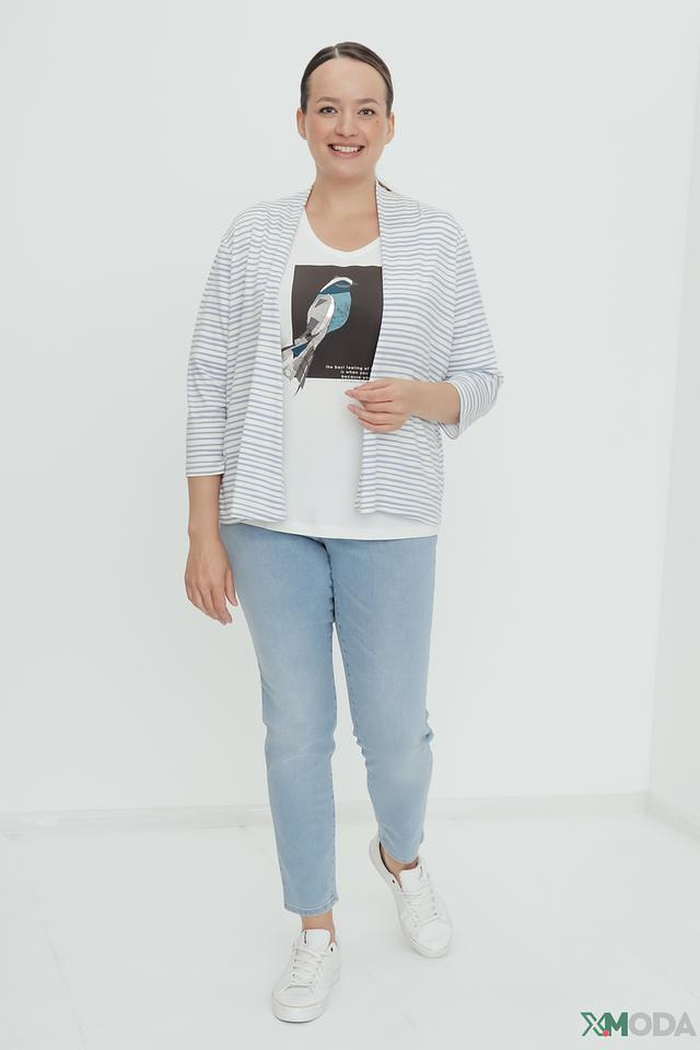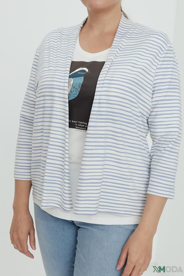 Женский кардиган Lebek голубого цвета в полоску – удобная и стильная модель с рукавом 3/4. Легкий крой и приятный к телу материал делают этот кардиган идеальным выбором для создания повседневных образов. Состав: вискоза 95%, эластан 5%