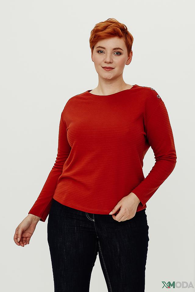 Женский пуловер Lebek насыщенного красного цвета с округлым вырезом и декоративными пуговицами на плече. Изготовлен из мягкого и приятного к телу сочетания полиэстера и вискозы, обеспечивающего комфорт в носке. Состав: полиэстер 64%, вискоза 35%, эластан 1%