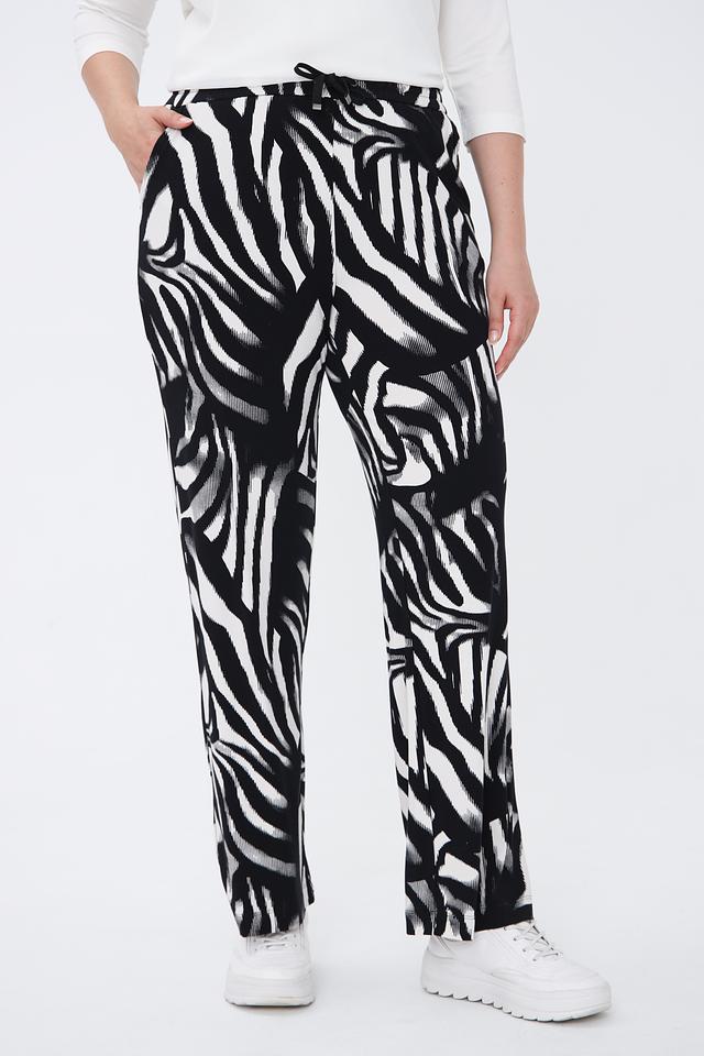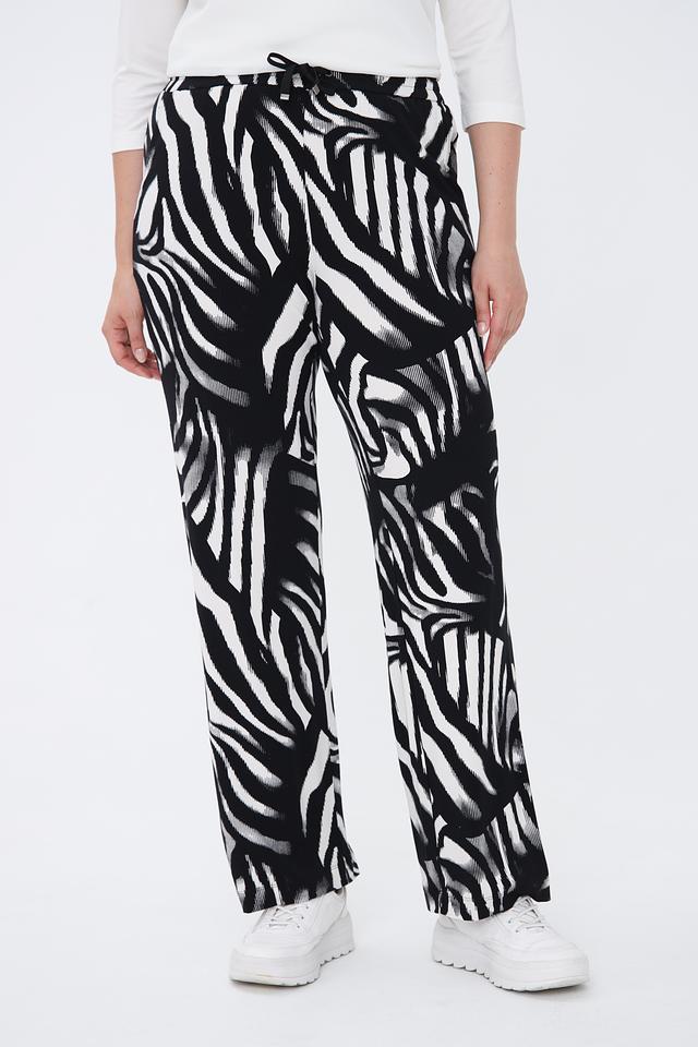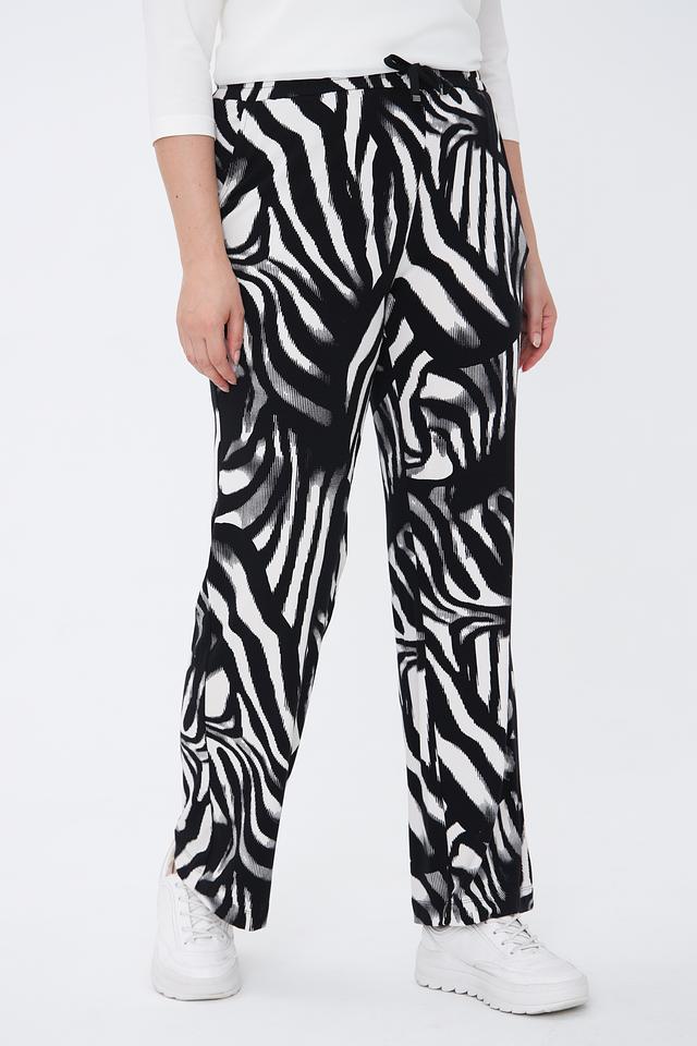 Женские брюки Lecomte чёрно-белого цвета с оригинальным принтом "зебра" станут ярким акцентом вашего образа. Модель выполнена из мягкой вискозы с добавлением эластана для комфорта и свободы движений. Состав: вискоза 96%, эластан 4%