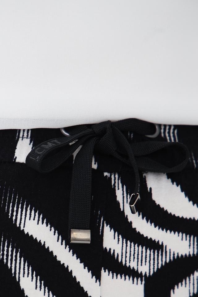Эти стильные брюки от Lecomte – отличный выбор для тех, кто ценит оригинальность и комфорт. Брюки выполнены в эффектном чёрно-белом принте, имитирующем шкуру зебры, что делает их ярким и запоминающимся элементом гардероба.